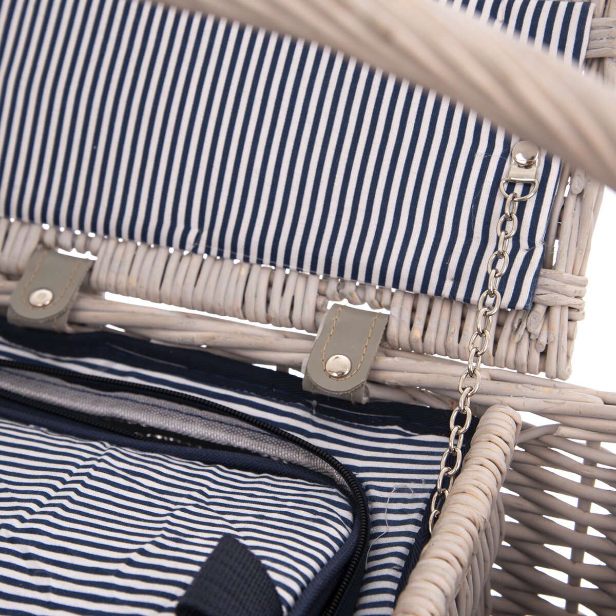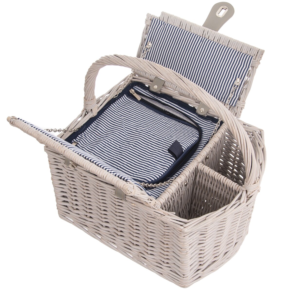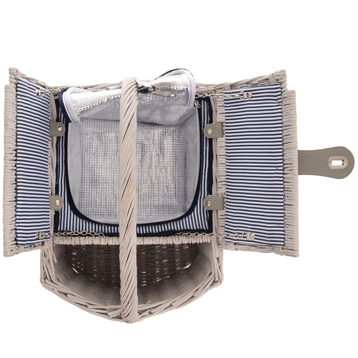 Kód produktu 730519Šedý proutěný piknikový koš o rozměrech 40×29×26/39 cm, který je vybavený termovložkou, praktickým zavíráním a uchem k přenášení. Otevírá se z obou stran.