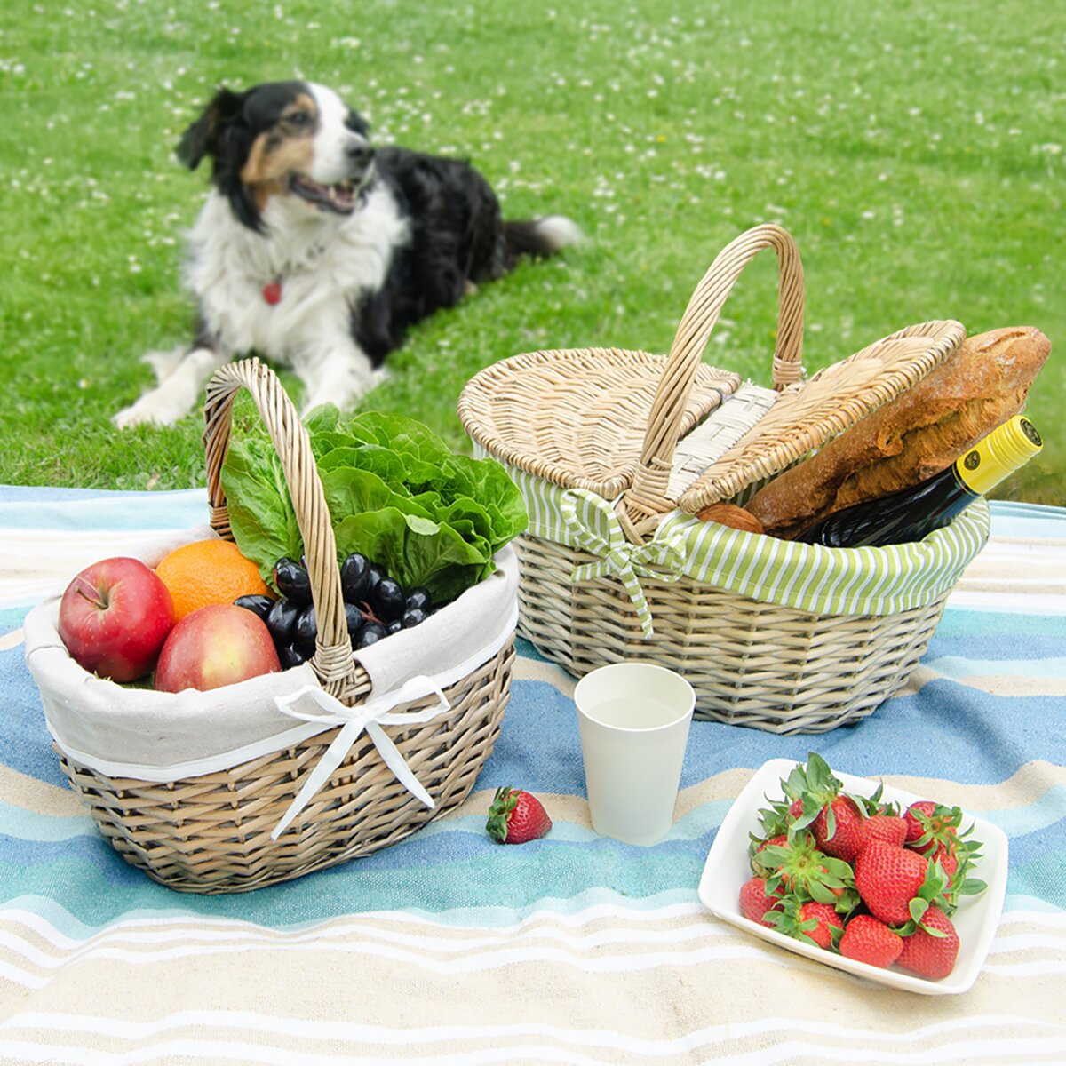 Kód produktu 730564Proutěný větší koš s pevným držadlem a s vnitřní odnímatelnou látkou je ideální na nákup i na piknik.
