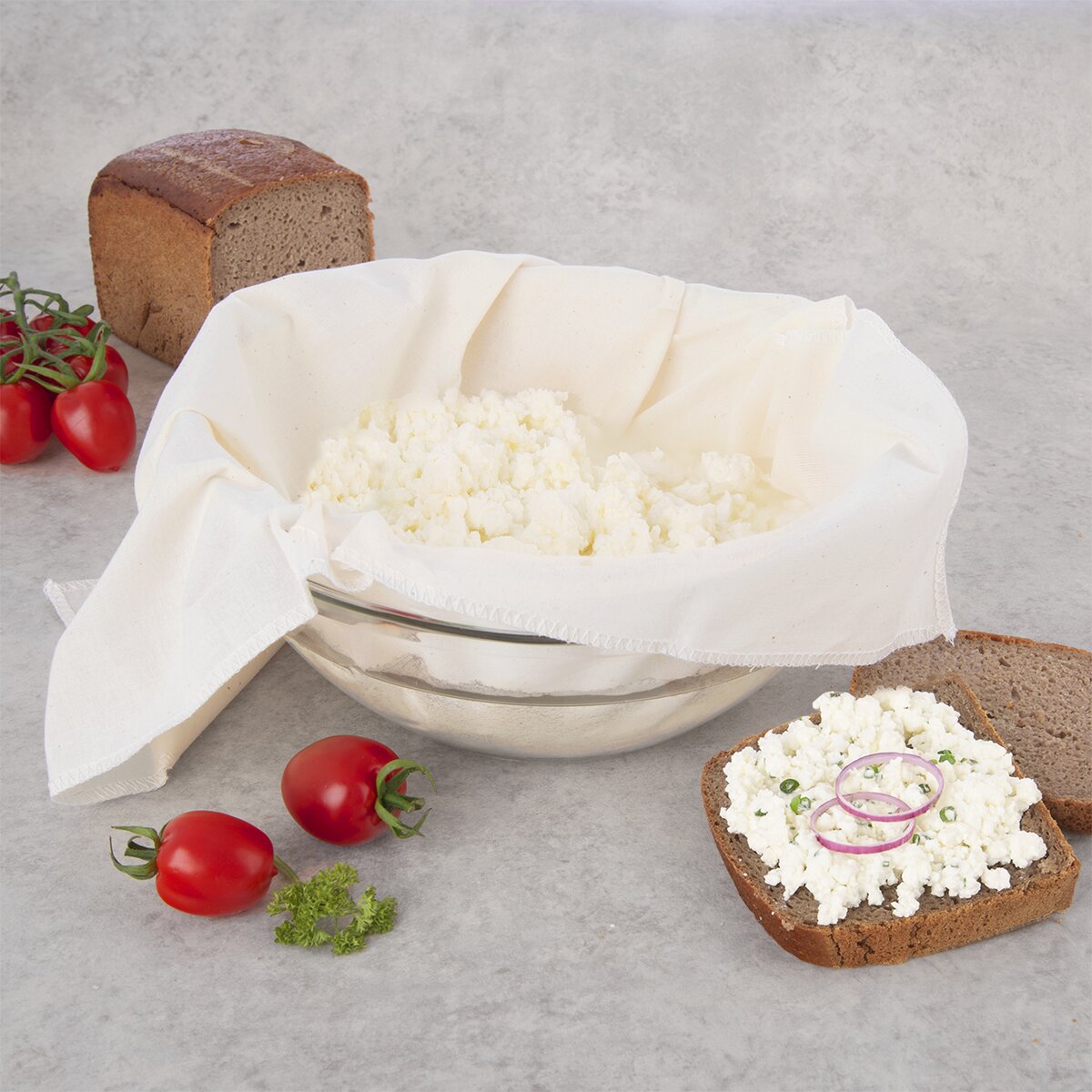 Taktéž jej lze vložit do klasického cedníku, pomůže s vykapáním syrovátky při výrobě sýrů. A kdo je zvyklý vařit knedlíky tzv. "v ubrousku", může kynuté, bramborové i karlovarské knedlíky vložit místo strečové fólie do plátna a položit je na pařáček. Bavlněnou šňůrkou lze plátno uchytit při odkapávání domácích sýrů na vařečku, k držadlu apod.