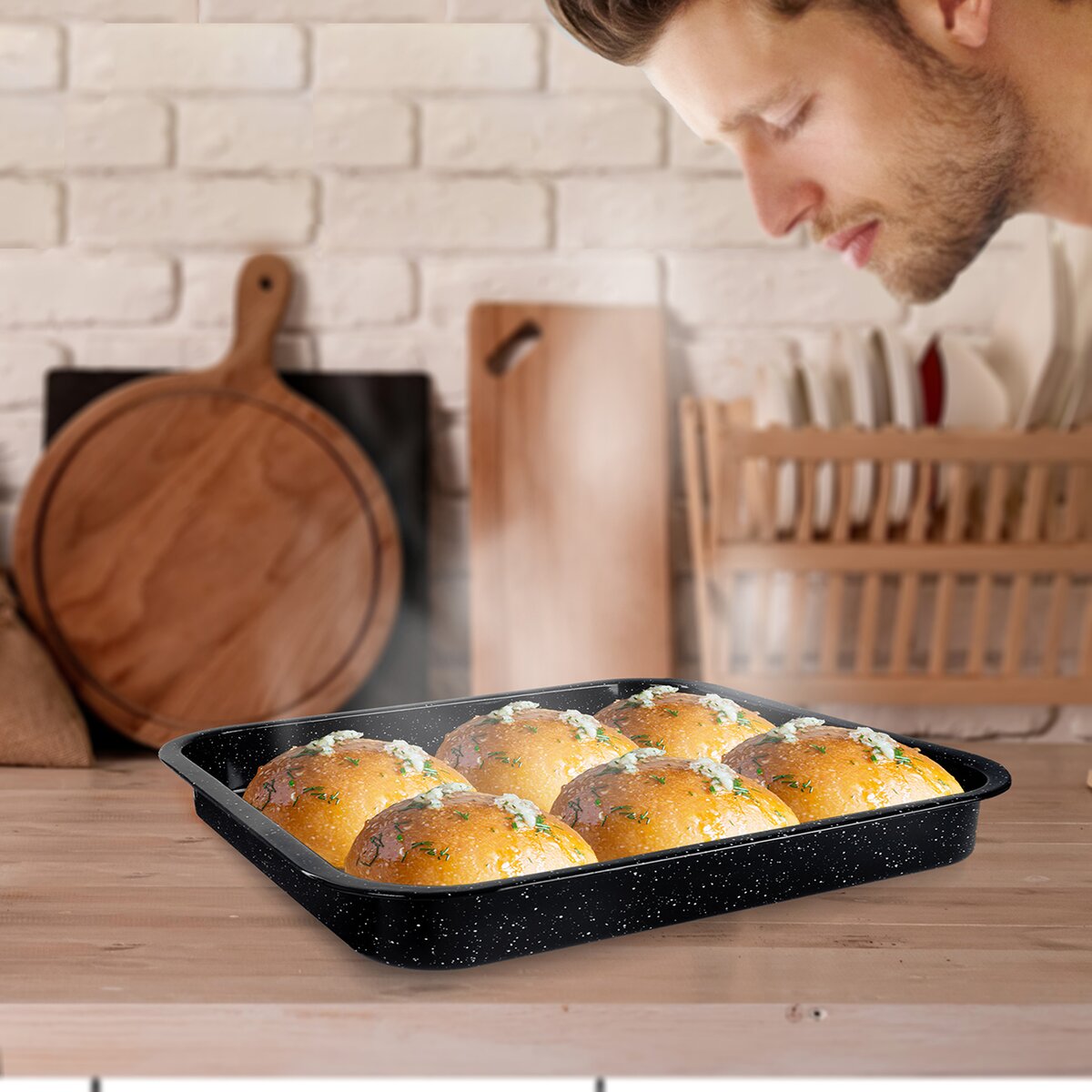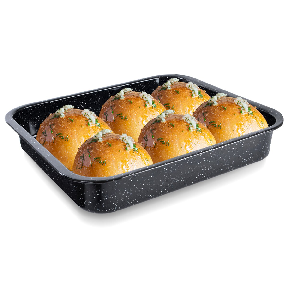 Kód produktu 123750Vysoký smaltovaný plech velikosti 41,5x36,5 cm do trouby k pečení sladkých a slaných pokrmů, zapékání, gratinování nebo sušení, možnost umývat v myčce nádobí.