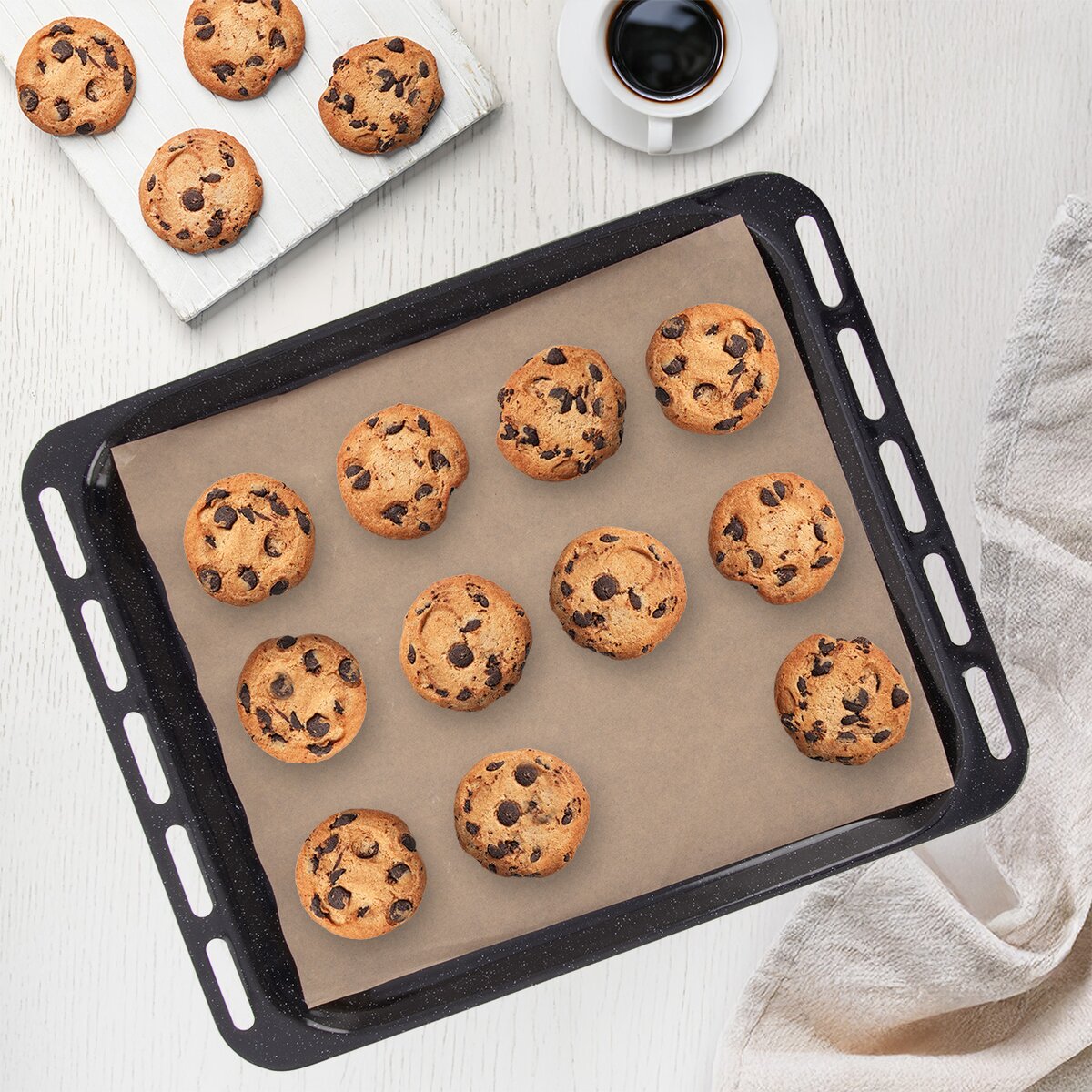 Nižší smaltovaný plech velikosti 45,5x36x2 cm je vhodný k pečení sladkých a slaných pokrmů, zapékání, gratinování nebo sušení v troubě, možnost umývat v myčce nádobí.