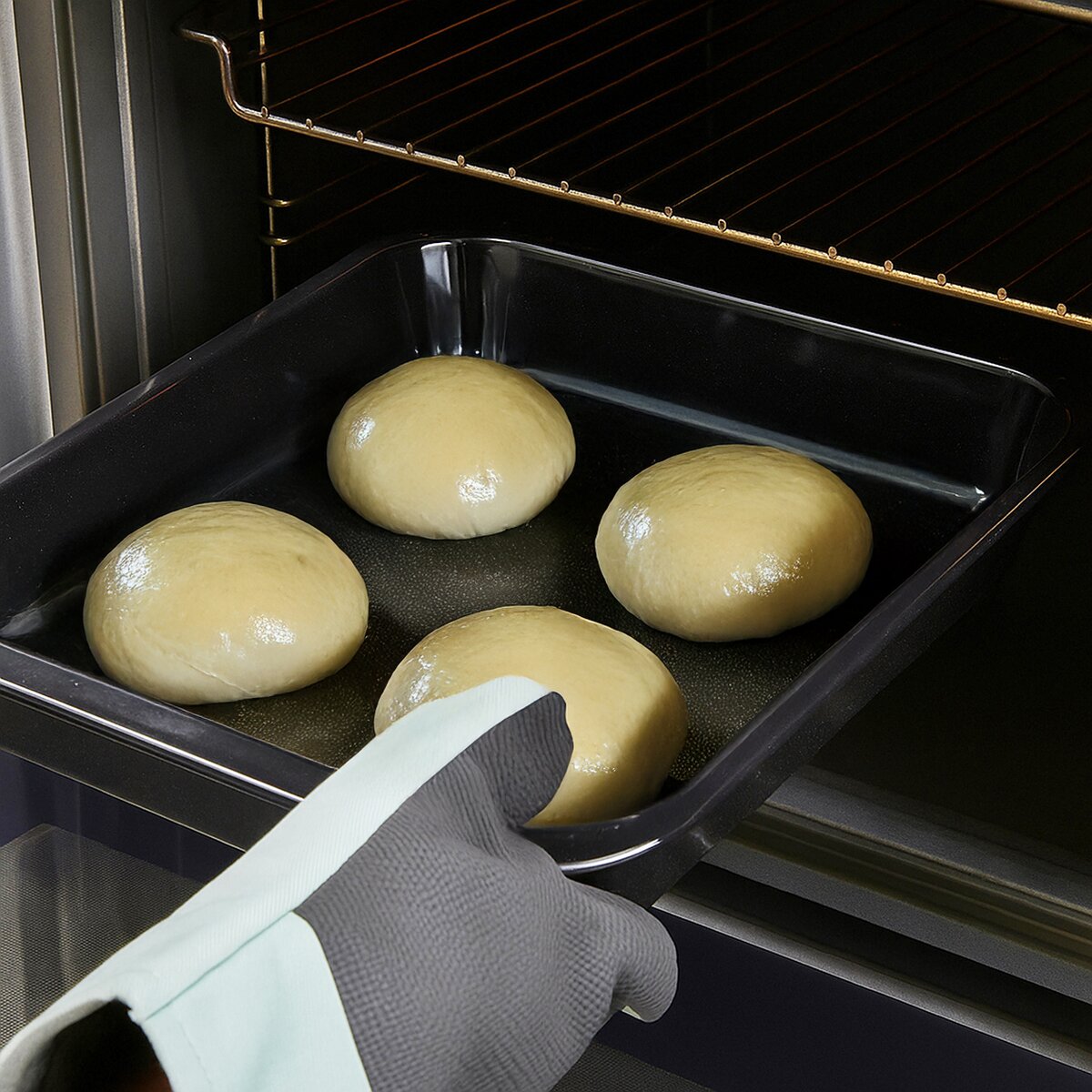 Pečící plech se smaltovaným povrchem používaly už naše babičky a i nadále má v kuchyni své stálé místo. Smalt je sklovitý materiál na bázi roztaveného skla, který je zdravotně nezávadný a neuvolňuje žádné škodlivé látky do potravin. Je odolný vůči kyselinám, zásadám i vysokým teplotám, což z něj činí ideální volbu pro pečení v troubě. Hladký povrch plechu se snadno čistí, neabsorbuje pachy ani chutě a má dlouhou životnost.