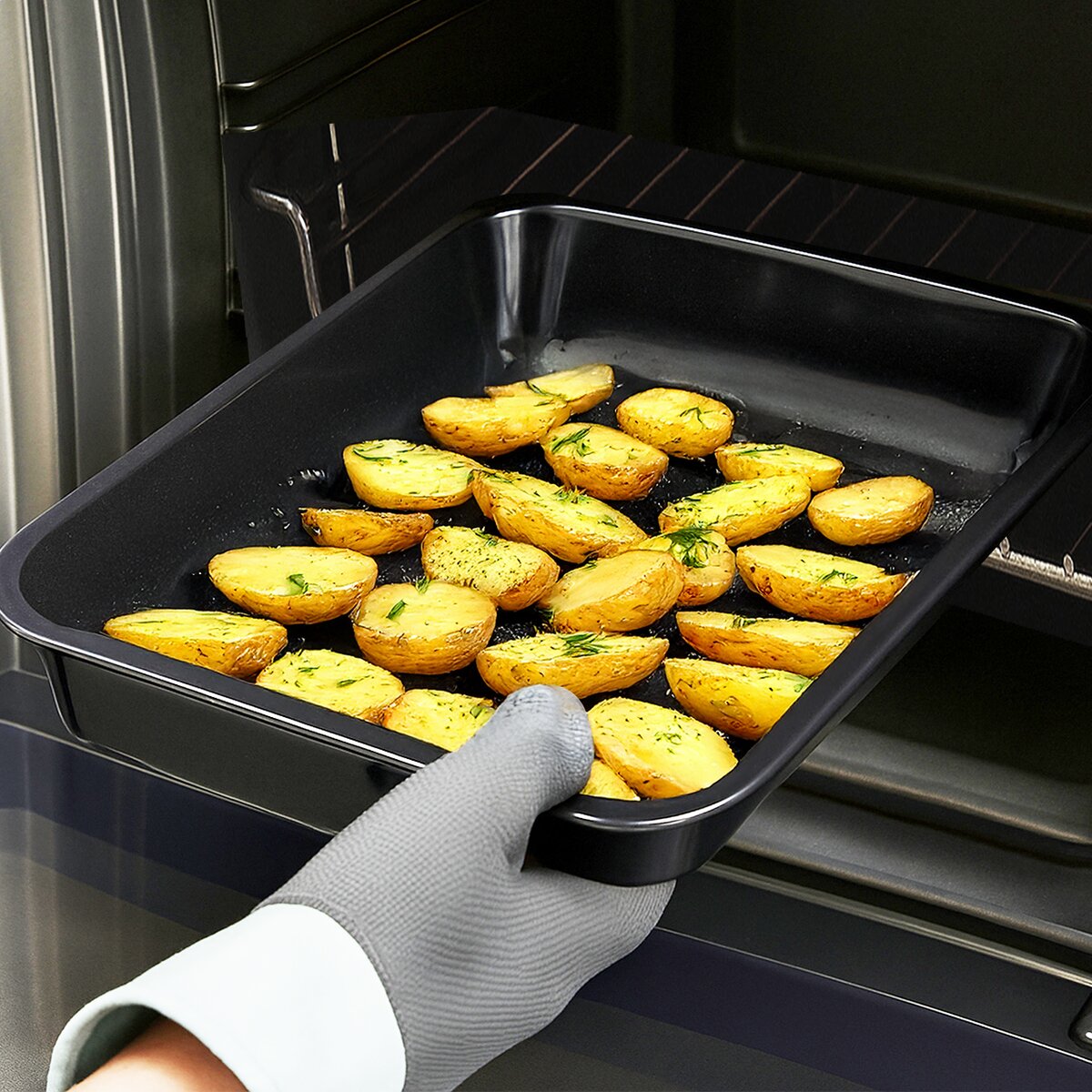 Kód produktu 127049Hluboký smaltovaný plech velikosti 40,8x31,8x6 cm je ideální k pečení sladkých a slaných pokrmů, k zapékání, gratinování nebo sušení v troubě a lze jej umývat v myčce nádobí.