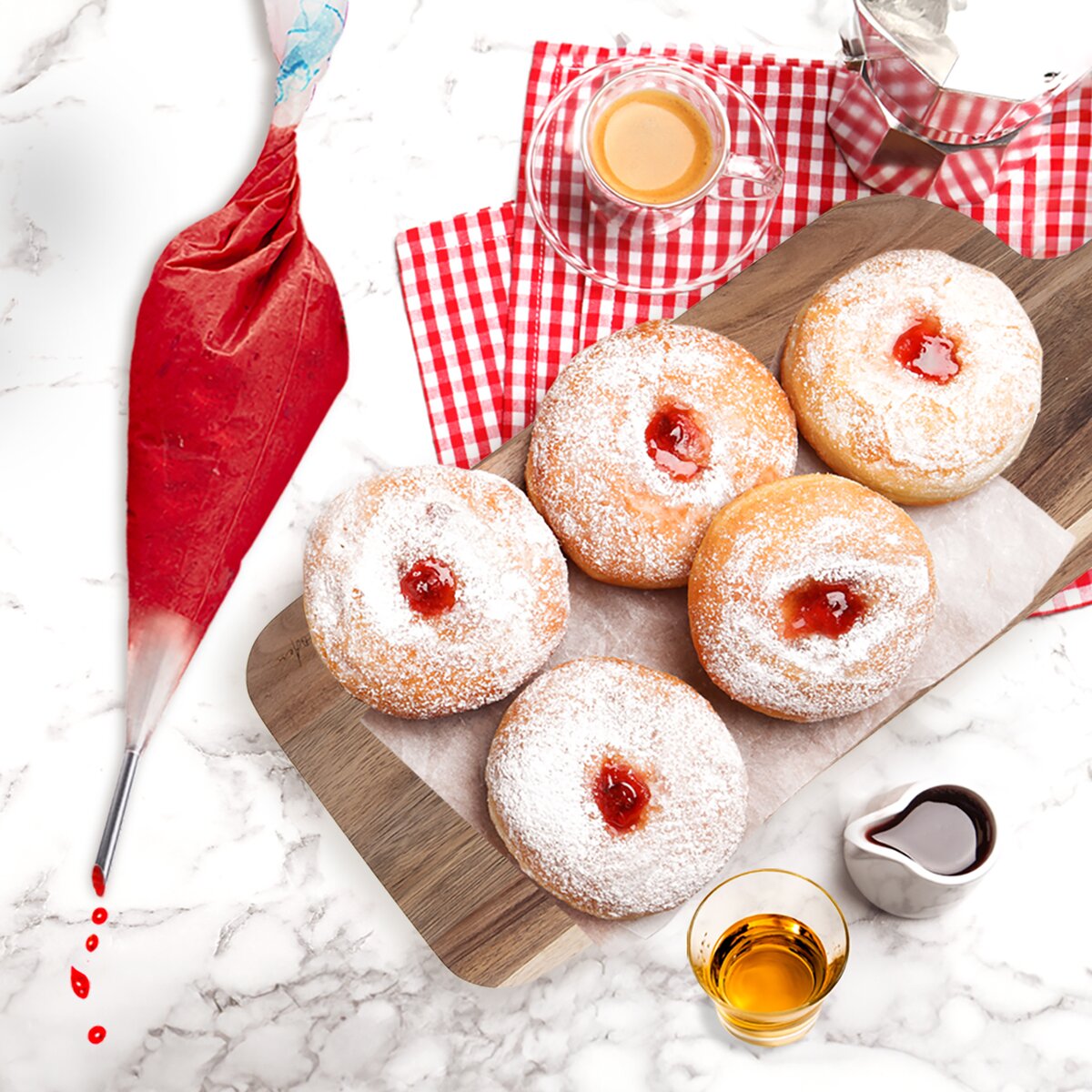 Pomocí této špičky můžete plnit domácí koblížky, muffiny marmeládou, tenké trubičky, minivětrníčky, zvané profiterolky, krémem či šlehačkou. Nebo si upečte nadýchané piškotové medvídky plněné čokoládovou náplní.