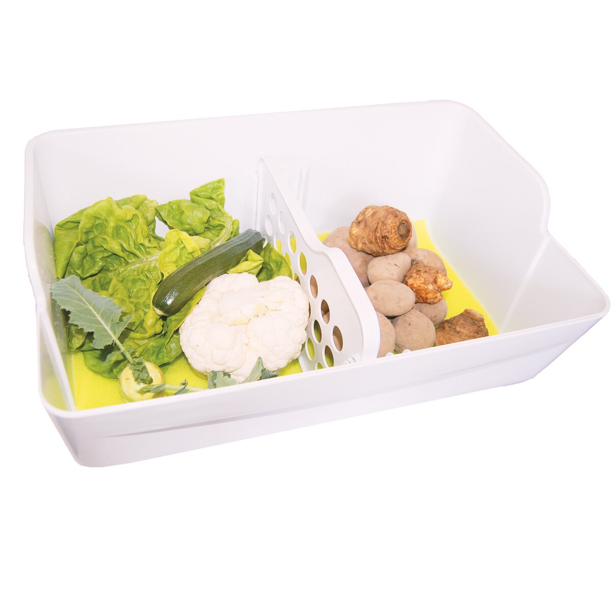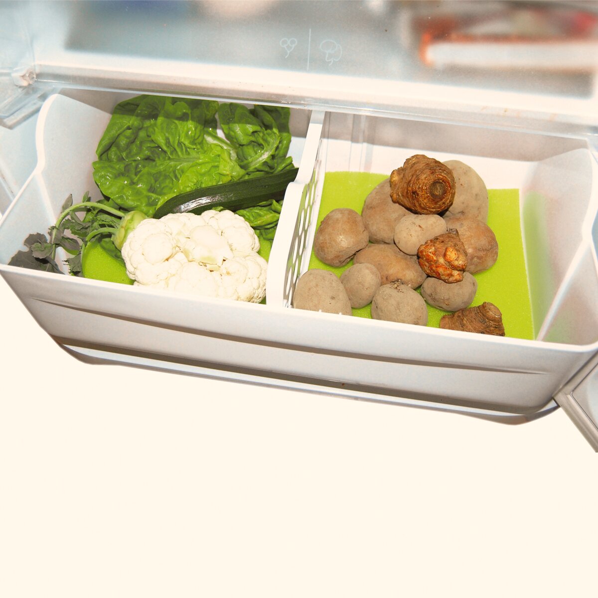 Podložka pod zeleninu ze speciálního materiálu, jehož struktura umožňuje vynikající cirkulaci vzduchu a uchová v lednici ovoce i zeleninu déle čerstvou a svěží. Hlavně u měkčích potravin, které jsou náchylné na otlaky a následné zahnívání.