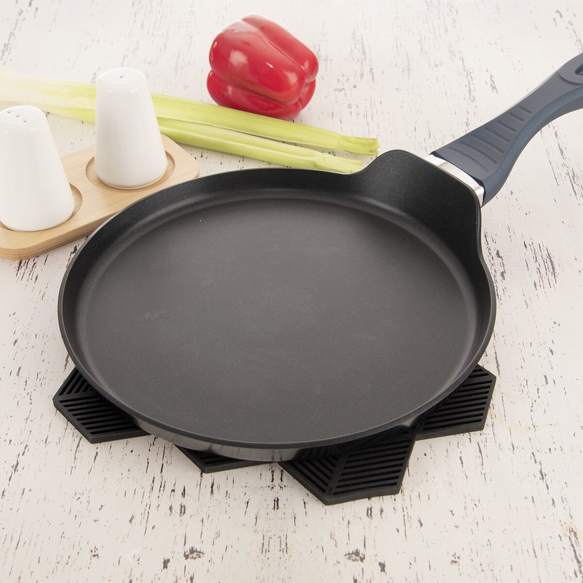 Kód produktu 121574Silikonová podložka pod skleničku nebo hrnec ochrání kuchyňskou linku, stůl nebo jiný povrch od teplého dna nádob.