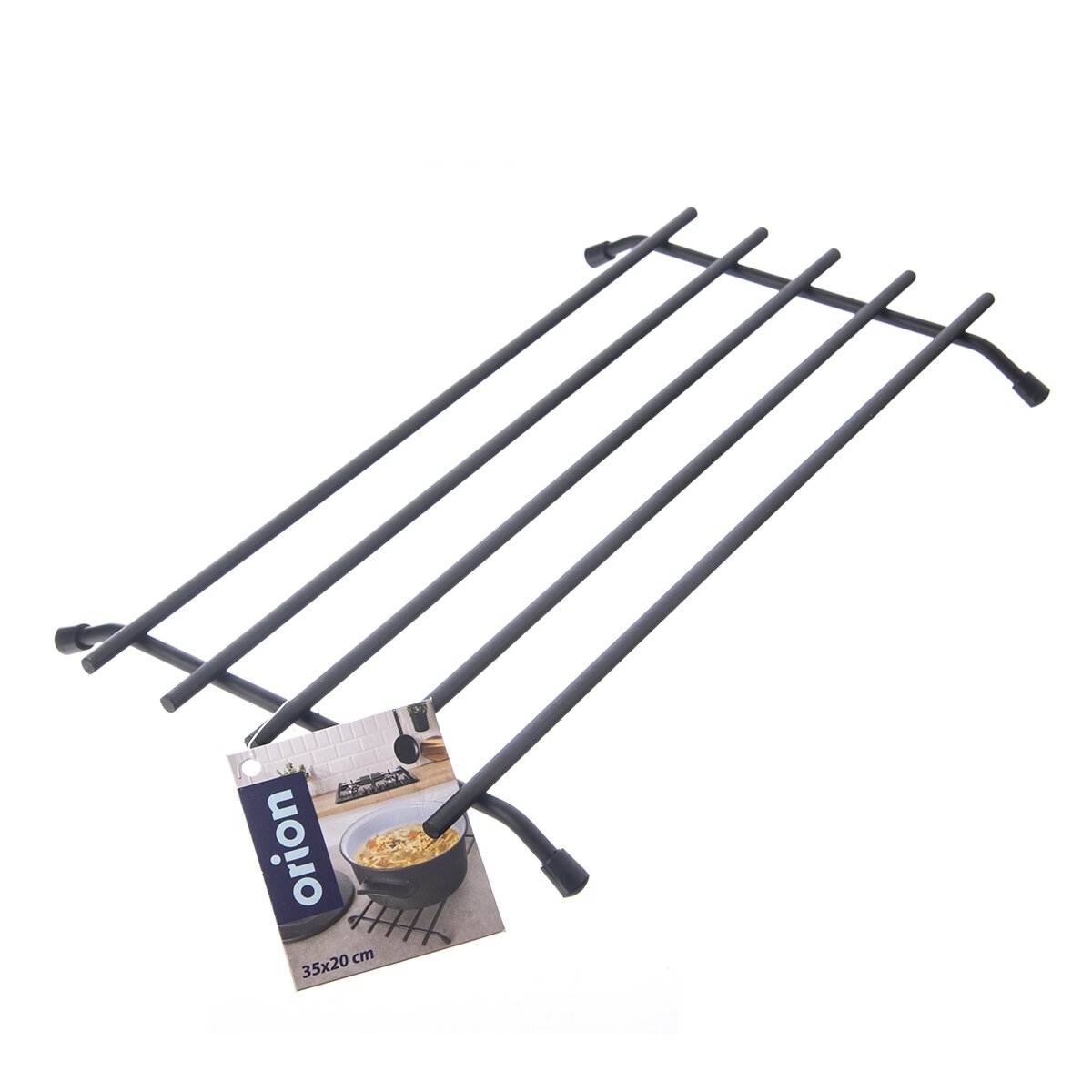 Kód produktu 121575Pevná obdélníková kovová podložka s černou povrchovou úpravou je určena pro odložení horkých hrnců i pánví. Díky rozměru 35x20x2,5 cm na ni lze položit i horký pekáč, právě vytažený z trouby.