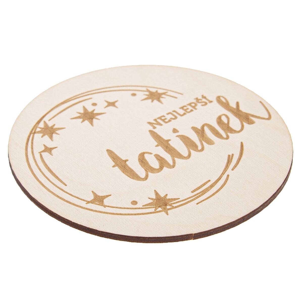 Dřevěný podtácek NEJLEPŠÍ TATÍNEK udělá radost vašemu tatínkovi nejen jako pozornost ke Dni otců nebo k narozeninám, doplěný třeba lahvinkou něčeho dobrého.