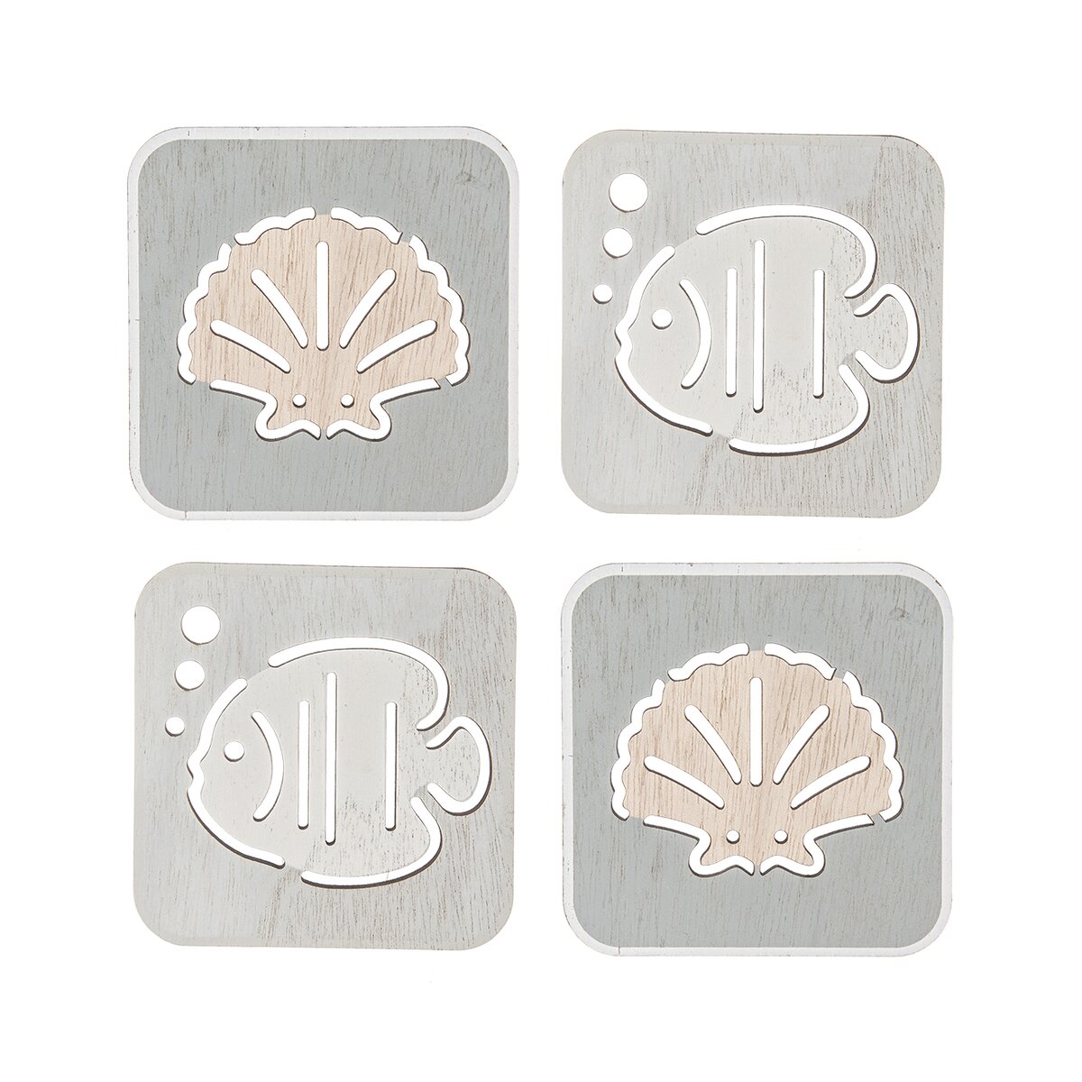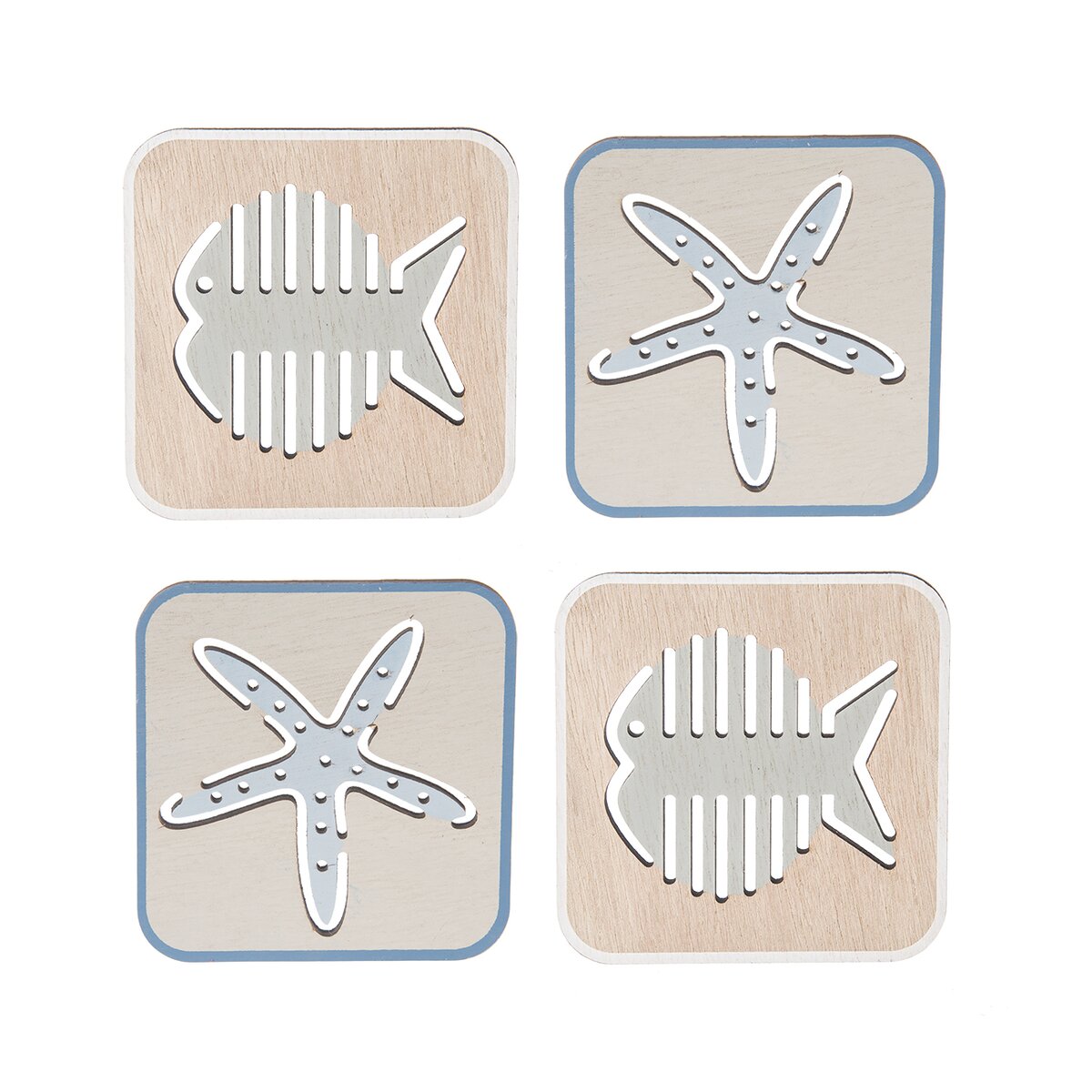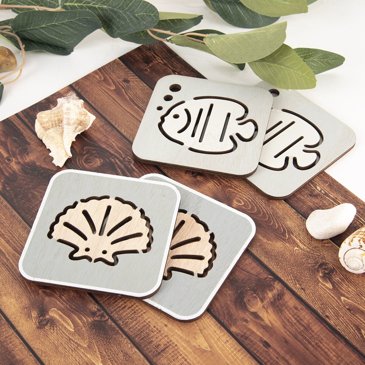 Dřevěné podtácky zamezí poškození stolu horkými hrnky nebo mokrými sklenicem, budou ale i zajímavým doplňkem. Sada 4 kusů podtácků s tématikou moře se výborně hodí k posezení na terase i u bazénu.