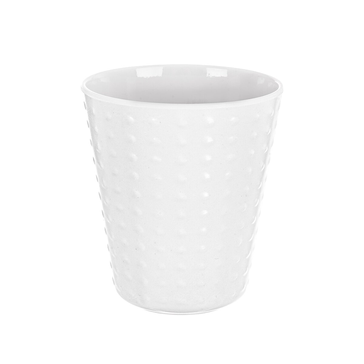 Kód produktu 132107Bílý melaminový pohár s drobný reliéfem z vnější strany má objem 0,38 l a hodí se k podávání nápojů na zahradní párty, oslavě, na dovolené či v karavanu.