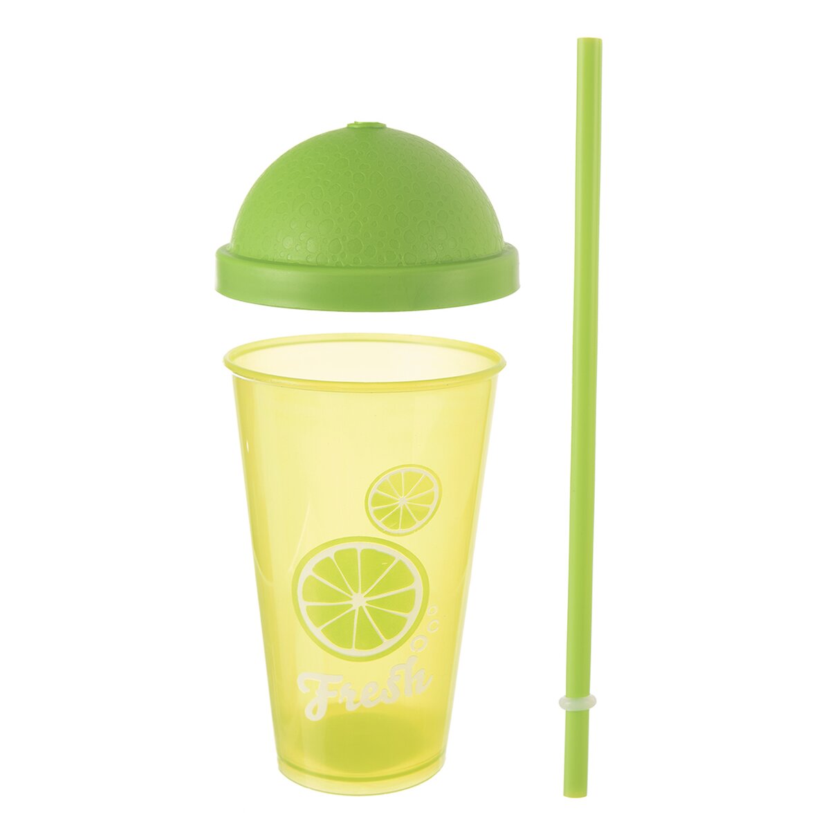 Kód produktu 121787Barevný plastový pohár FRESH LIME s dekorem citrusů a nápisem je doplněn brčkem a víčkem. Má objem 0,5 l a je Ideální k podávání osvěžujících nápojů.
