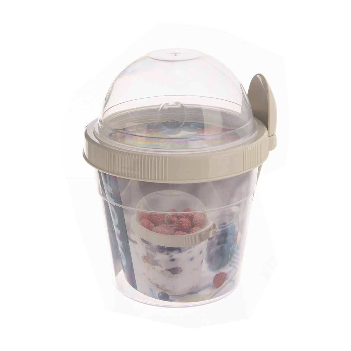 Hodí se k uložení jogurtu, přesnídávky, salátů nebo čerstvého ovoce, nahoru do víčka o objemu 0,22 l pak lze vložit müsli, cereálie, lupínky nebo piškoty.