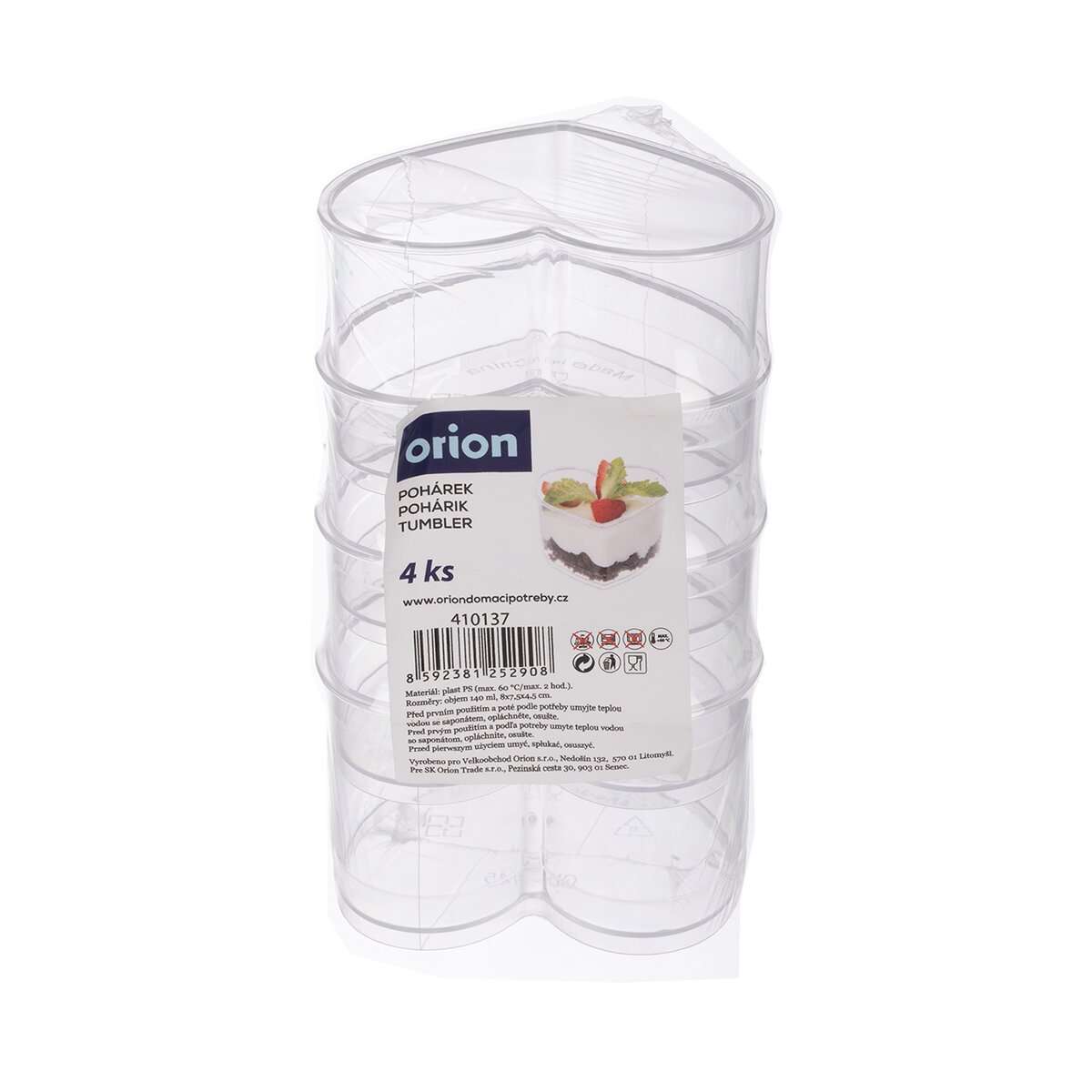 Kód produktu 410137Sada 4 ks transparentních pohárků ve tvaru srdce je jako stvořená na chlazené sladké dezerty typu Panna cotta, Tiramisu i slané pochoutky a pěny.