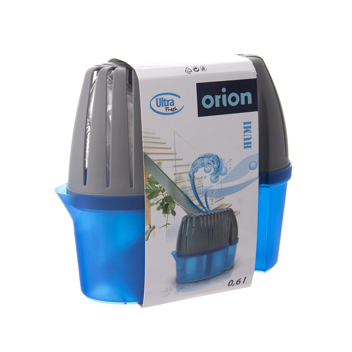 Kód produktu 832375Pohlcovač vlhkosti HUMI o objemu nádoby 0,6 litrů účinně natahuje vlhkost z okolního prostředí. Granulát je součástí balení.