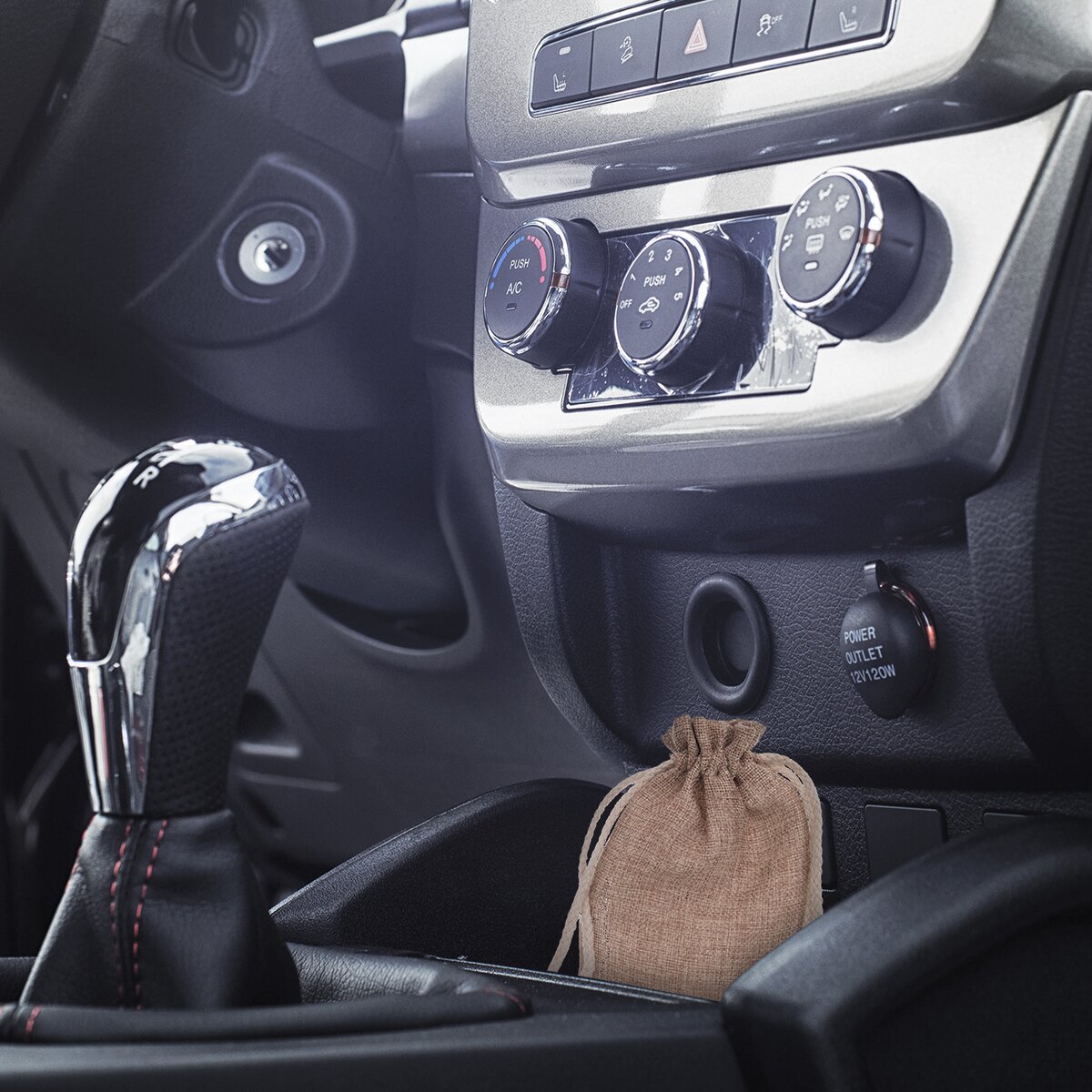 Kód produktu 832378Pohlcovač vlhkosti do auta s granulátem o hmotnosti 100 g, který lze vložit do přiloženého lněného pytlíku.