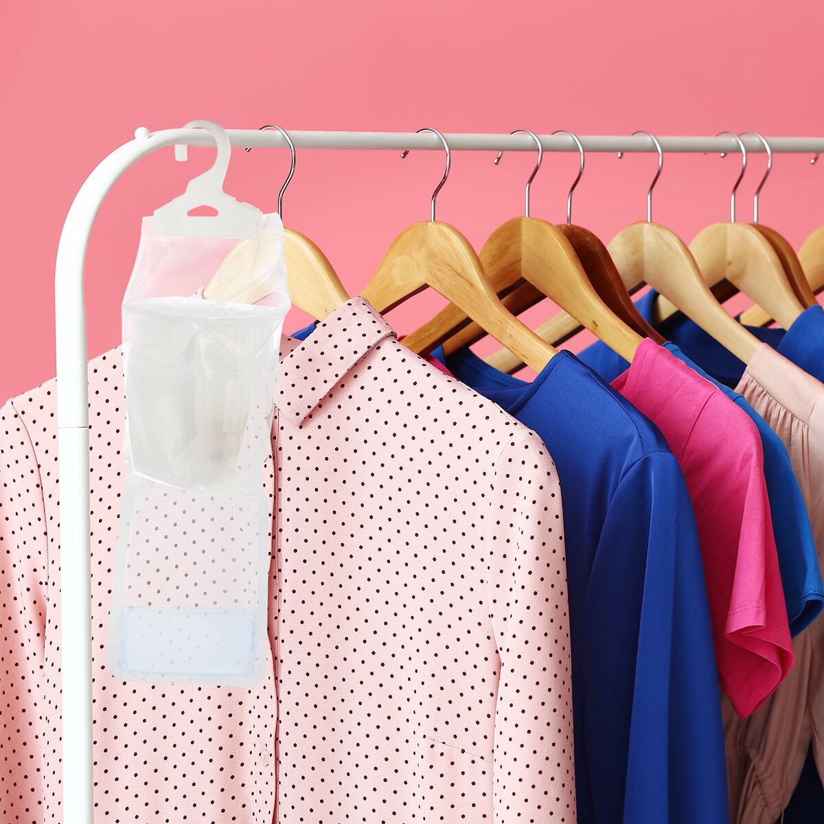 Tento pohlcovač vlhkosti s vůni oceánu se hodí do prostorů, které nejsou pravidelně větrány, nebo pro období, kdy se přestává v místnosti topit a vlhkost se tak zvyšuje. Má závěs, díky kterému jej lze snadno zavěsit na věšák, na tyč do šatní skříně nebo jiný držák. Skříň nejenže příjemně provoní, ale oblečení nebude trpět vlhkostí. Zavěšujte jej ve vzdálenosti min. 5 cm od oblečení.