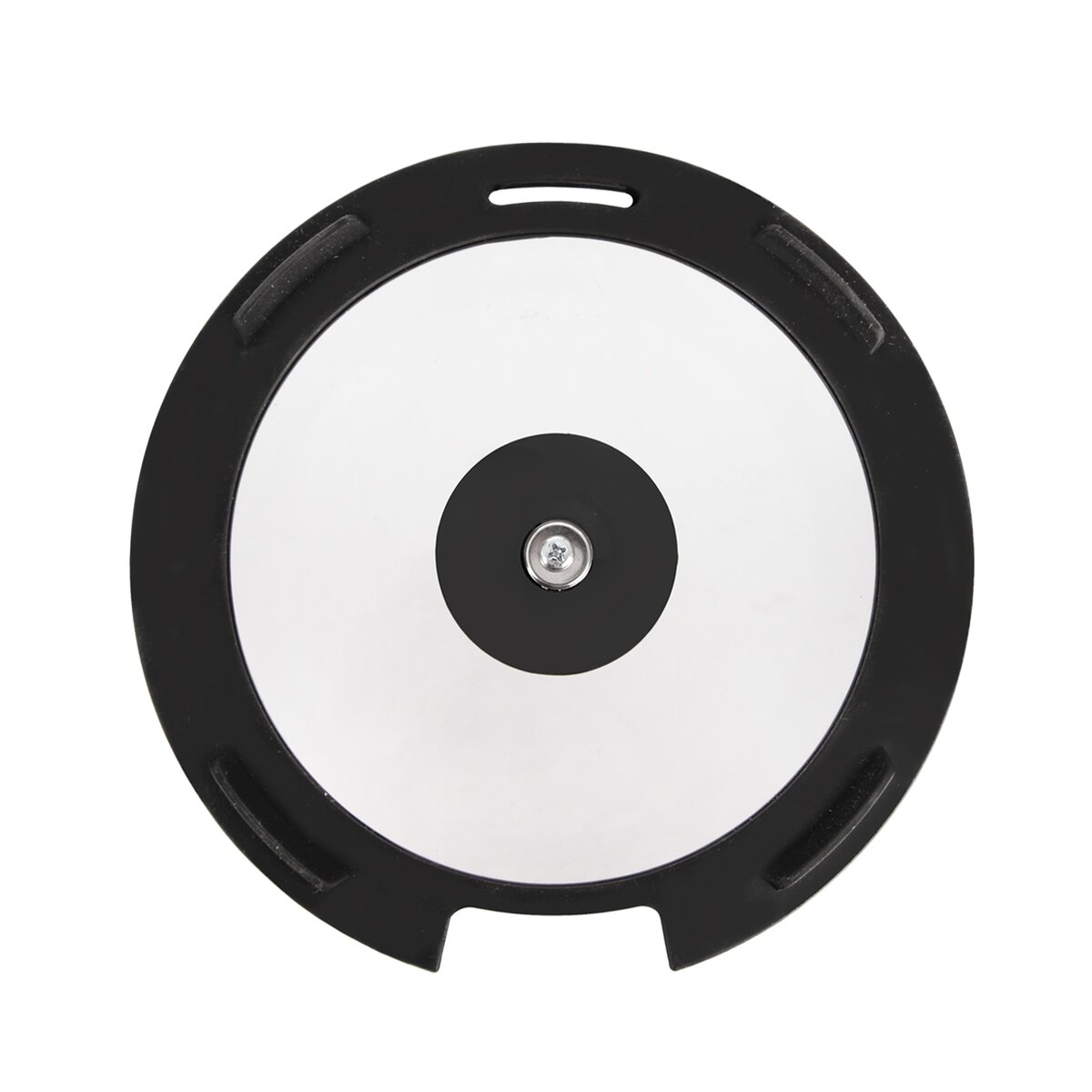 Otvor pro únik páry lze využít také pro cezení tekutin. Ze spodní strany je opatřena čtyřmi zarážkami tak, aby dobře seděla na hraně nádobí. Do trouby ji lze používat až do teploty 220 °C. Knopek je připevněn nerezovým šroubem, kovovou a silikonovou podložkou.