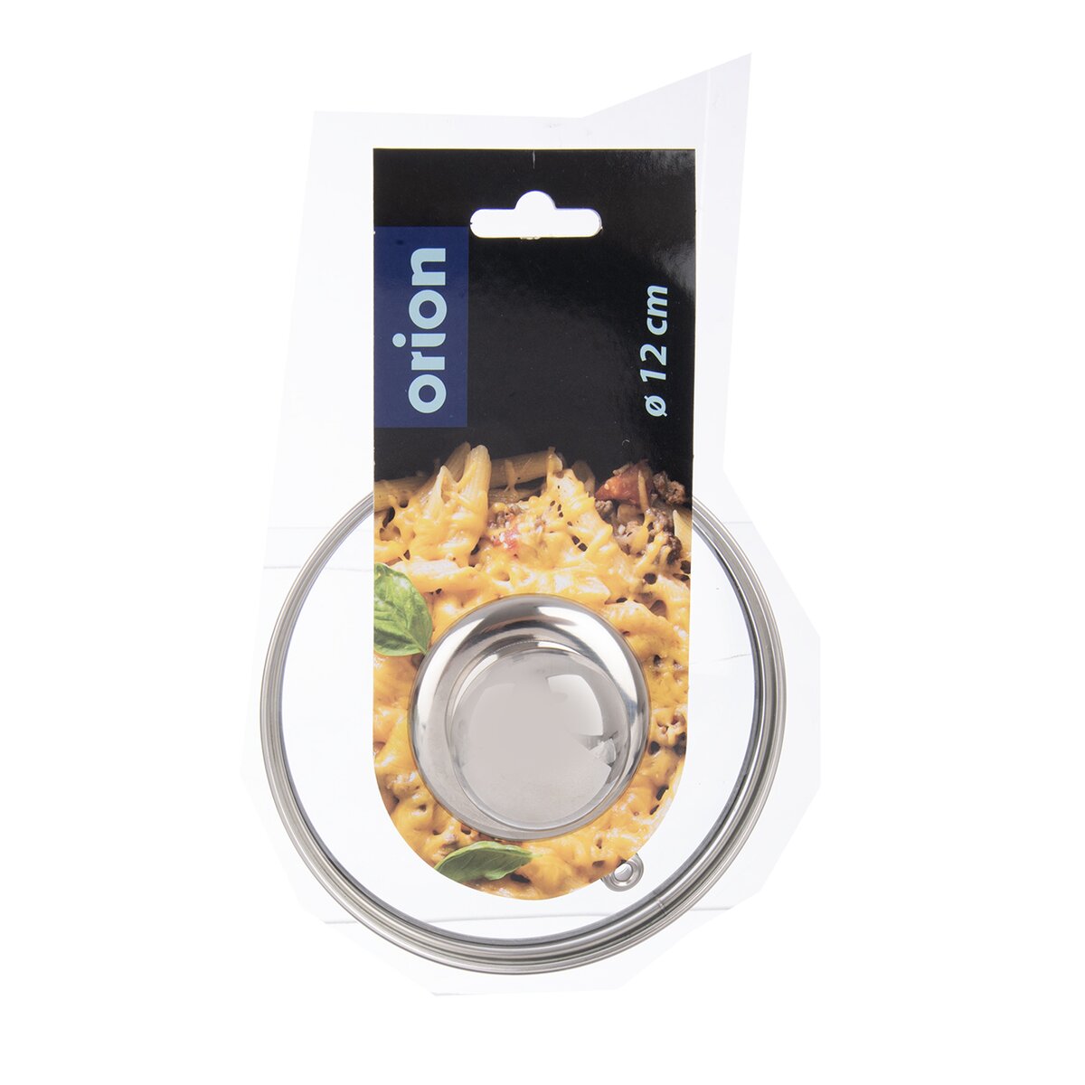 Kód produktu 126340Praktická skleněná poklice průměru 12 cm s nerezovým lemem a úchytem pro ekonomické vaření. Vhodná pro vaření, do trouby i myčky.