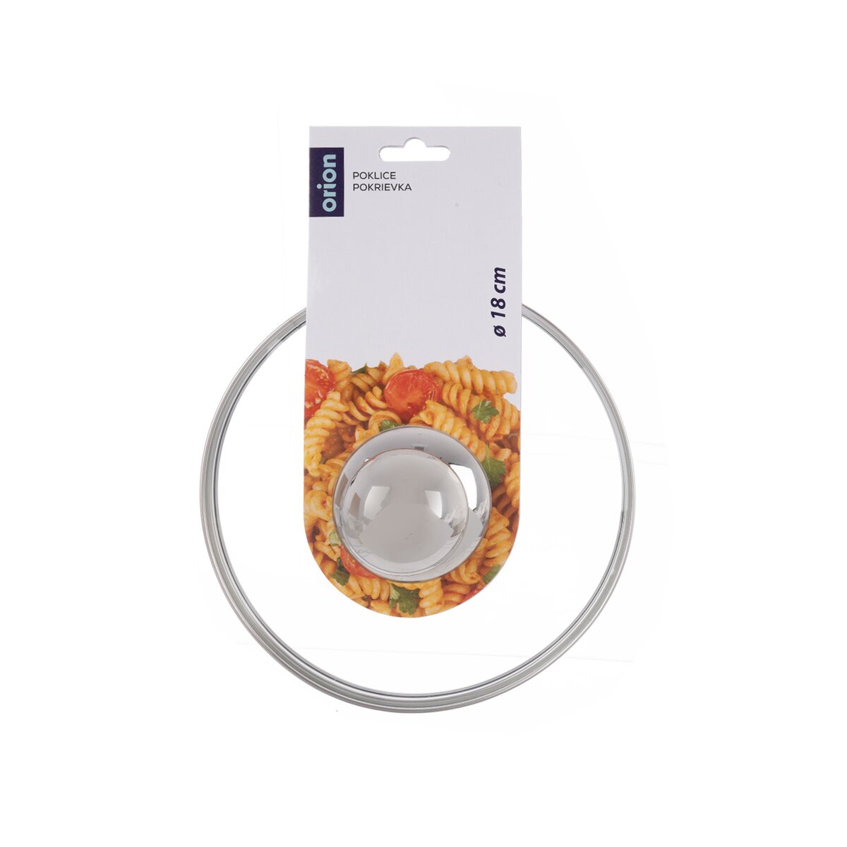 Praktická skleněná poklice průměru 18 cm s nerezovým lemem a úchytem pro ekonomické vaření. Vhodná pro vaření, do trouby i myčky.