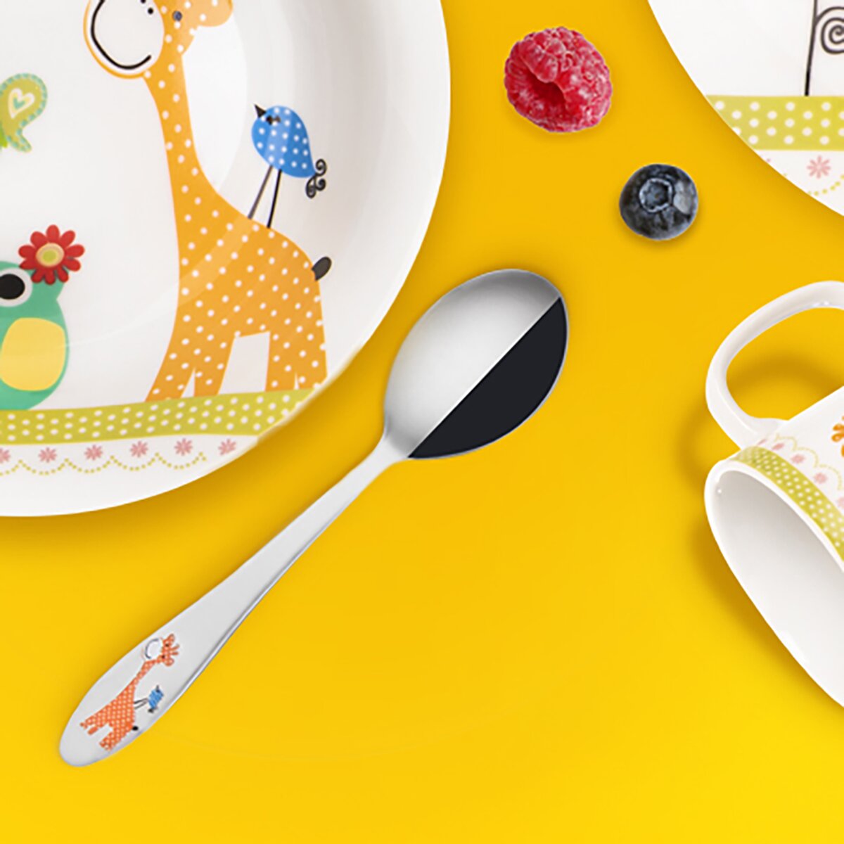 Kód produktu 143674Dětská nerezová lžíce s barevným motivem žirafy je určena pro každodenní používání.