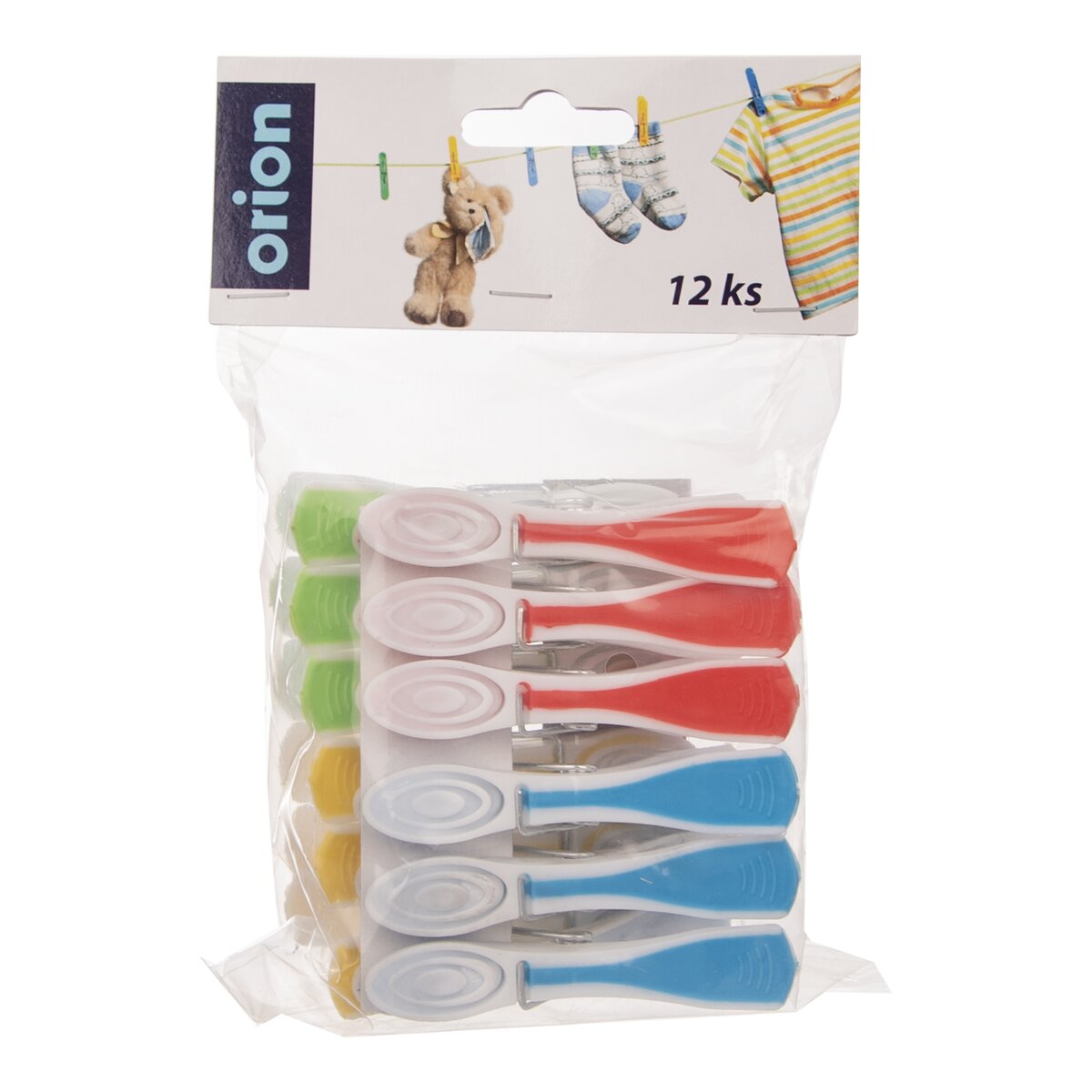 Kód produktu 531033Sada 12 kusů barevných plastových kolíčků na prádlo.