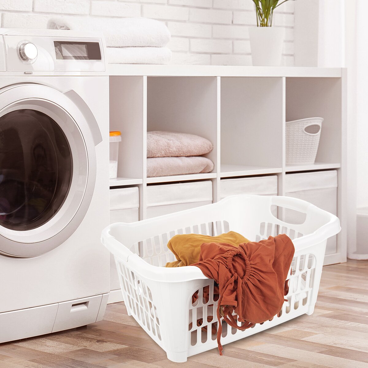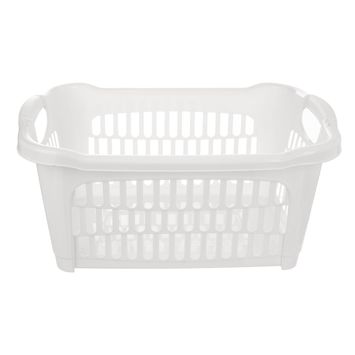 Kód produktu 731501Bílý prádelní koš HOBBY se dvěma uchy a děrovaným povrchem, o velikosti 51x35x23 cm, je vhodný na přenášení čistého vypraného prádla a nejrůznějších drobností v domácnosti.