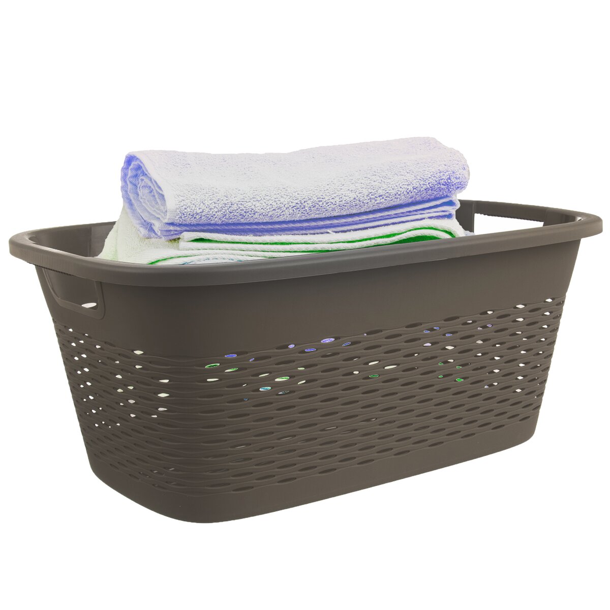 Moderní vzhled koše s jemnou děrovanou strukturou je určen na přenášení čistého prádla na pověšení a bude díky tlumené tmavě šedé barvě ladit s interiérem moderní i tradiční koupelny.