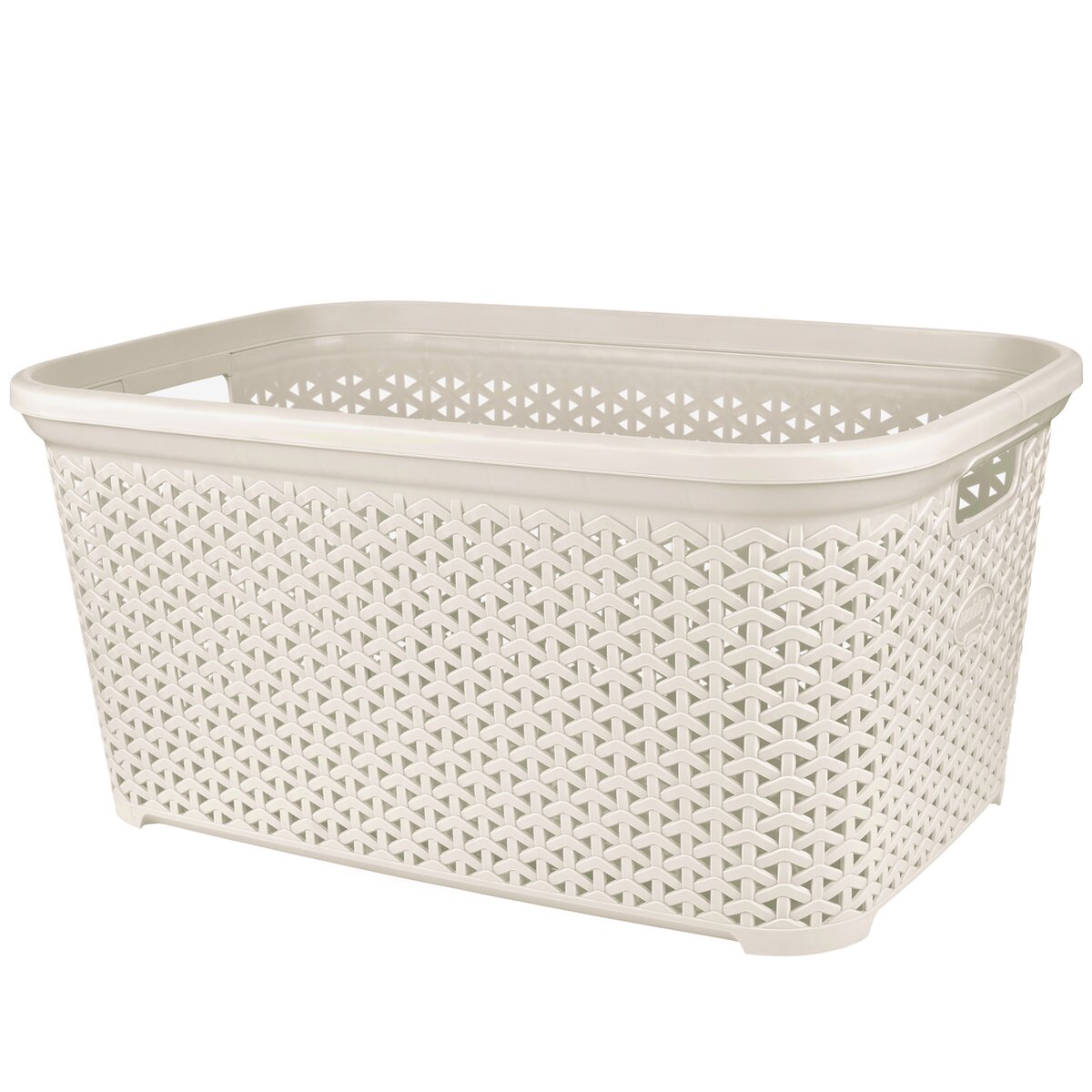 Kód produktu 730537Otevřený krémový plastový prádelní koš o objemu 50 l v dekoru ratanu.