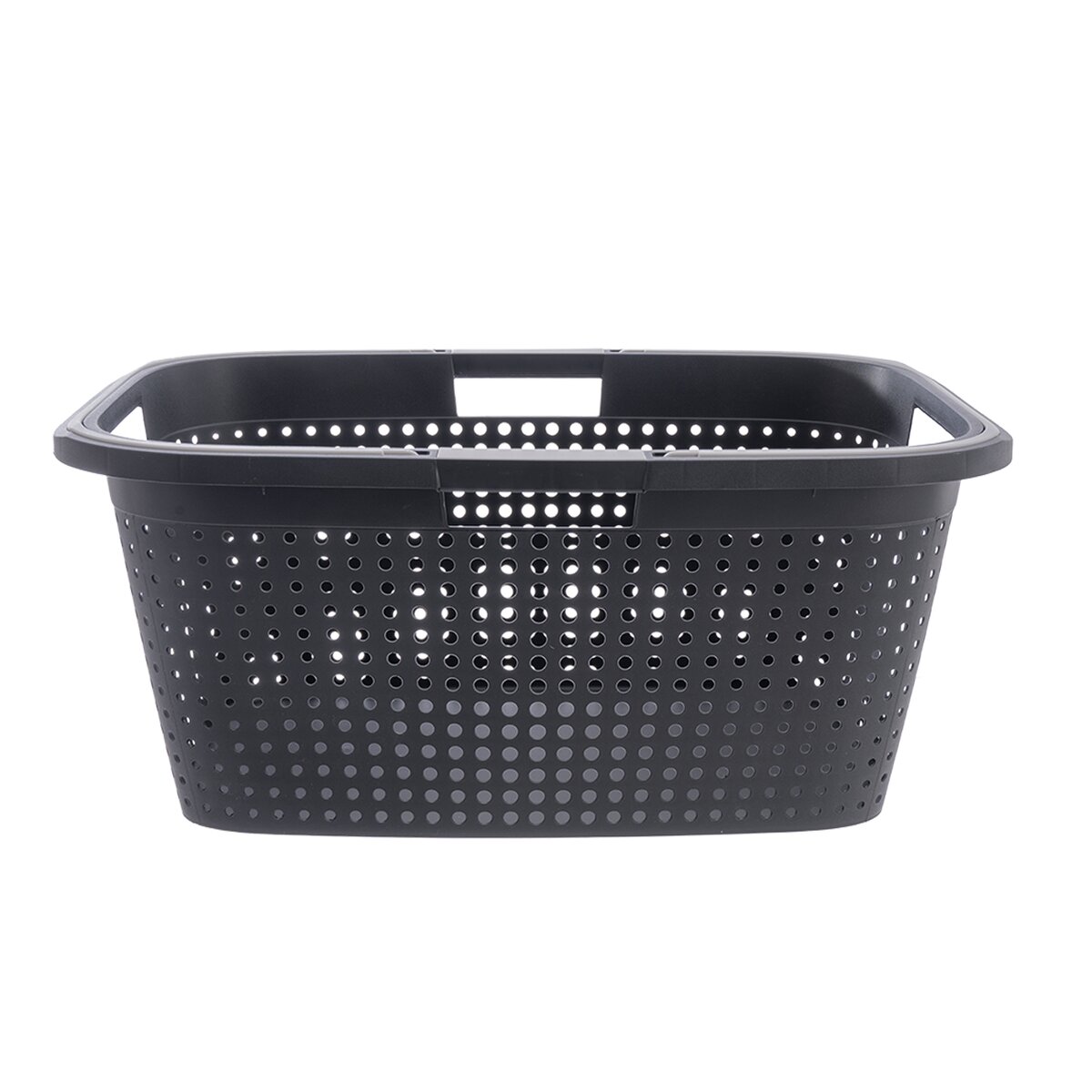 Kód produktu 730569Otevřený šedý prádelní koš o objemu 38 l je určen k přenášení prádla, lze využít jak rukojeti po stranách, tak i sklopná držadla.