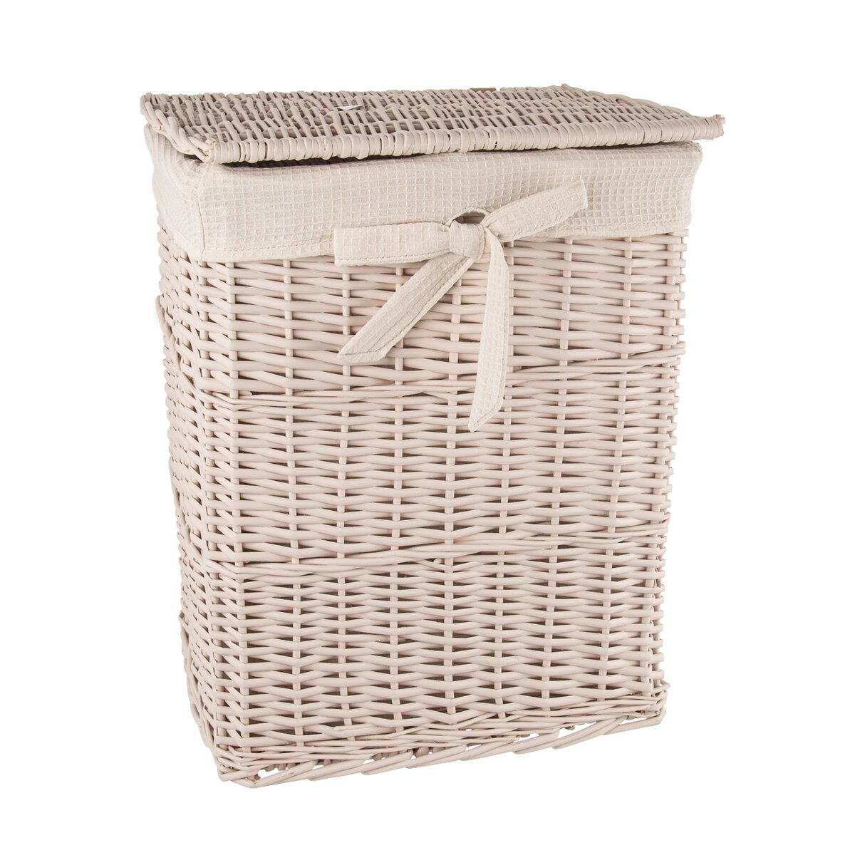Tento béžový koš s víkem vyrobený z vrbového proutí je praktický na uložení špinavého prádla či jiných věcí v domácnosti. Uvnitř se nachází odnímatelná textilie vyrobená z 65% bavlny a 35% polyesteru, kterou lze v případě potřeby prát v pračce.