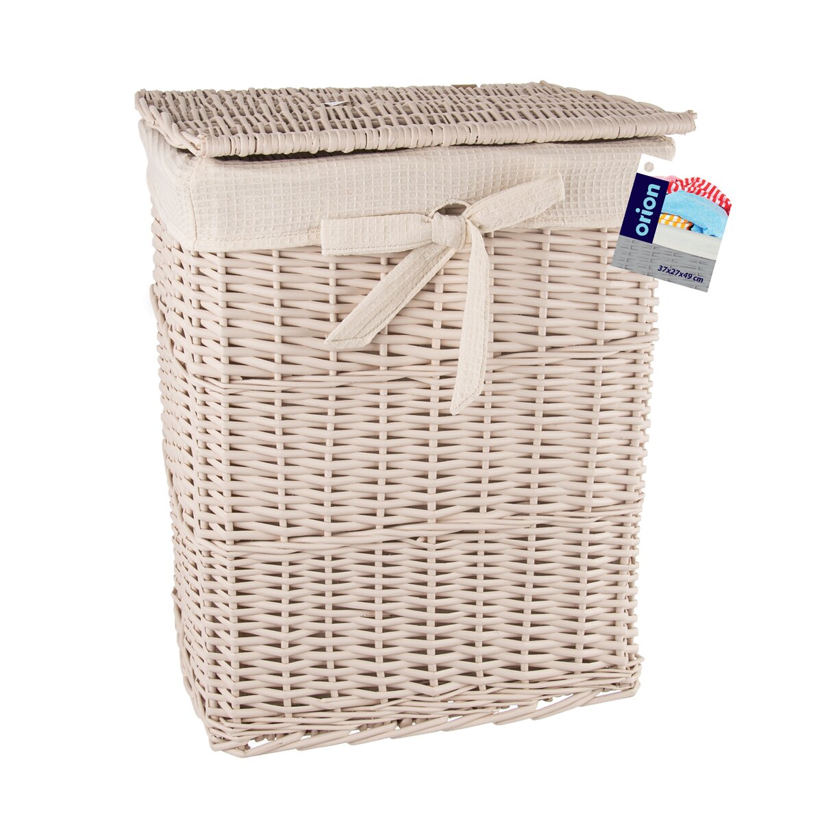 Kód produktu 730531Béžový proutěný prádelní koš s víkem o rozměrech 37×27×49 cm.