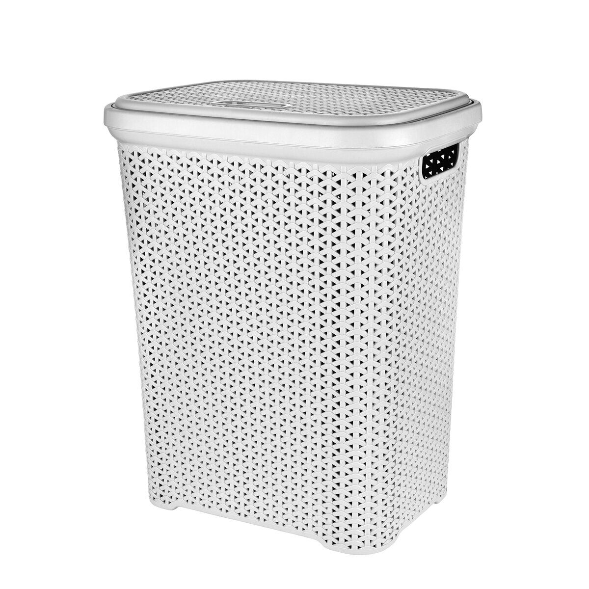 Koš na prádlo s odklápěcím víkem. Materiál: plast. Dekor ratanu. Rozměry: 44x33x56 cm.