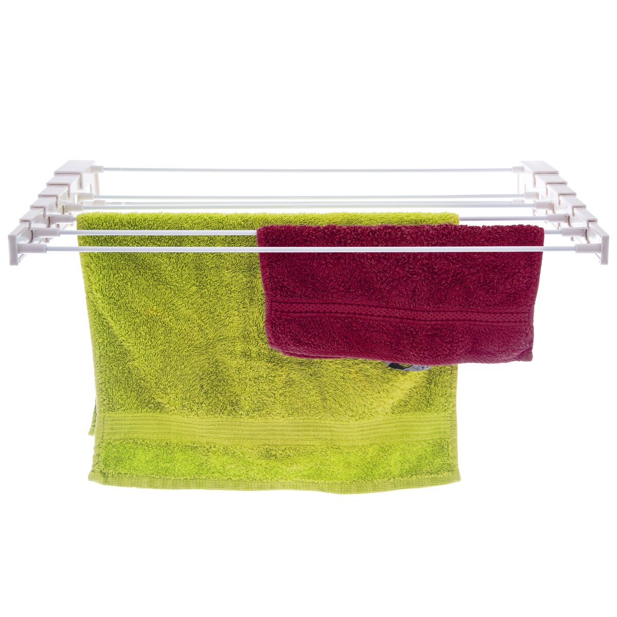 Kód produktu 531148Kovový skládací sušák je skvělý pomocník pro každou koupelnu, balkon, terasu nebo sušící místnost. Pomocí jednoduchého přišroubování ho lze umístit do jakéhokoli prostoru a výšky. Jeho zasunovací ramena lze pak od stěny snadno natáhnout. Při uschnutí prádla pak velmi jednoduše shrnete sušák zpět ke stěně a tím získáte opět volný prostor. Materiál: plast, ocel. Rozměry: š. 60 cm, v. 5,5 cm, h. 8 – 33 cm. 6 pozic na sušení – d. 52 cm. Montážní materiál je součástí dodávky. Nosnost 5 kg.