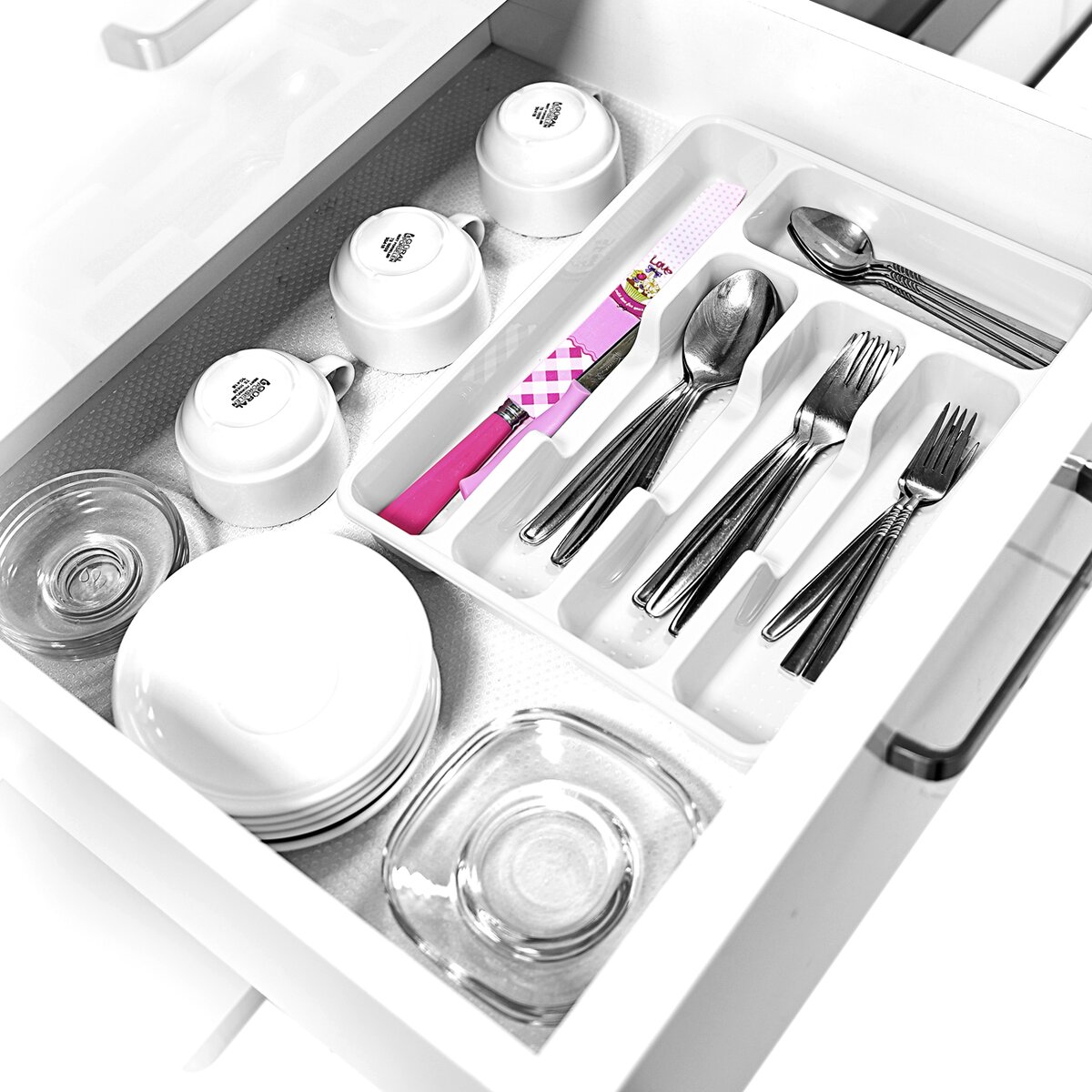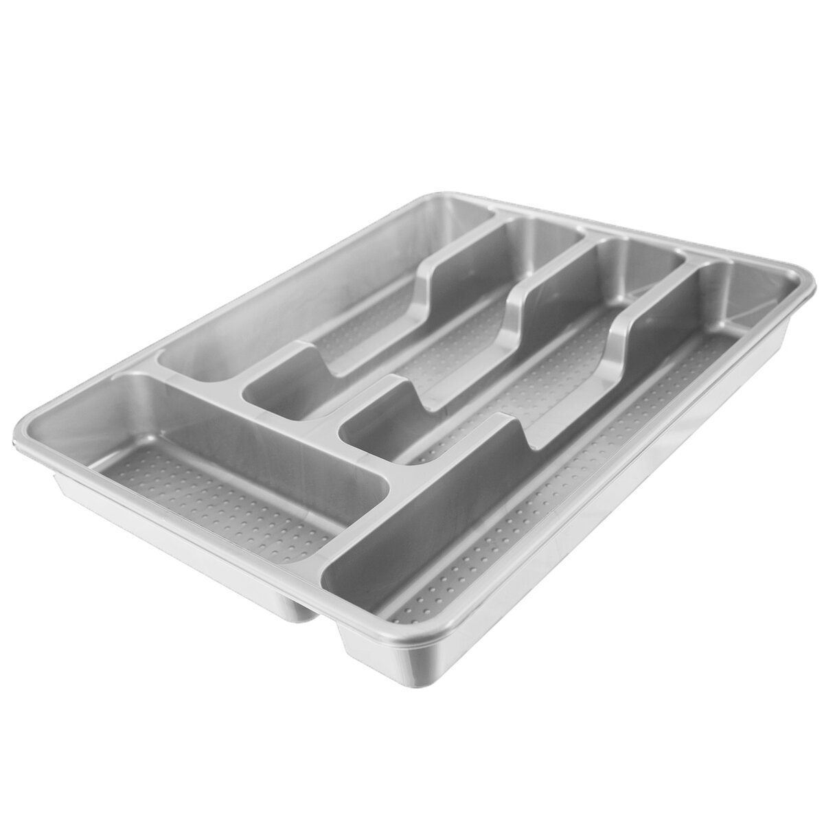 Plastový příborník DEM udrží pořádek ve vaší kuchyňské lince. Je rozdělený na 5 sekcí, takže do něho pohodlně uspořádáte jídelní příbory, lžičky i nože, a má rozměry 34×26,5×4,5 cm.