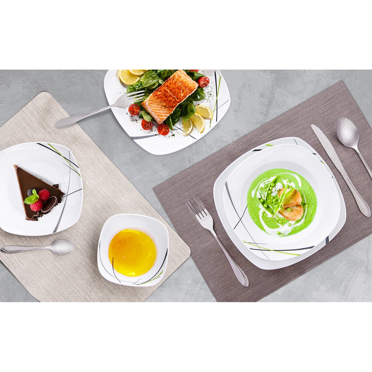 Podle stylu, barev vaší kuchyně, jídelny můžete i své stolování vyladit. Díky decentnímu, ale přitom luxusně vypadajícímu metalickému tónu bude toto prostírání nadčasové.