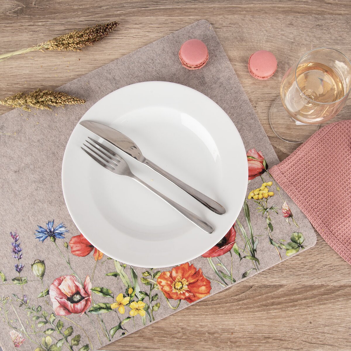 Prostírání z polyesteru (plsti) bude slušet každému stolu, vnáší do stolování závan nekonvenčního boho stylu, kde dominují přírodní materiály. Zamezí poškození stolu horkými talíři a ostrými příbory, ušpinění jídlem, ale zároveň bude i designovým prvkem. Je estetické i praktické, tlumí hluk pokládaných talířů. Drobečky nebo zbytky jídla pohodlně sesypete do koše a v případě ušpinění prostírání jej otřete vlhkým hadříkem, nežehlete, neperte ani nebělte jej.