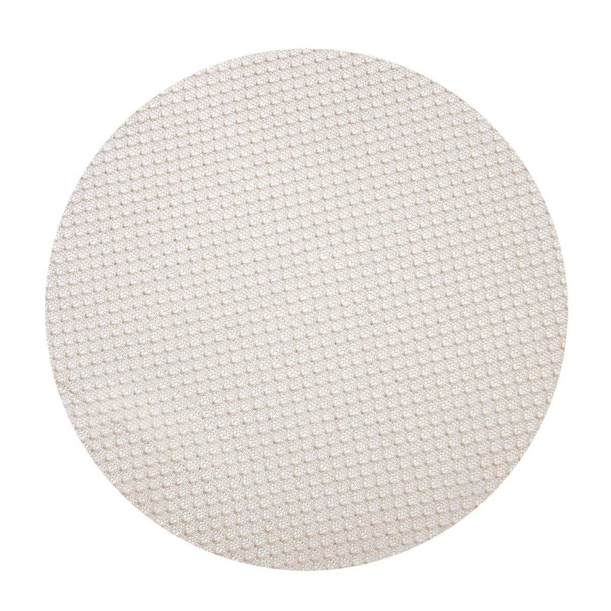 Kód produktu 728069Kulaté syntetické prostírání ve světlém odstínu s jemnými zlatými nitkami, o průměru 38 cm, je určeno jako ochrana před pokládanými, horkými talíři a esteticky doplní běžné i slavnostní stolování.