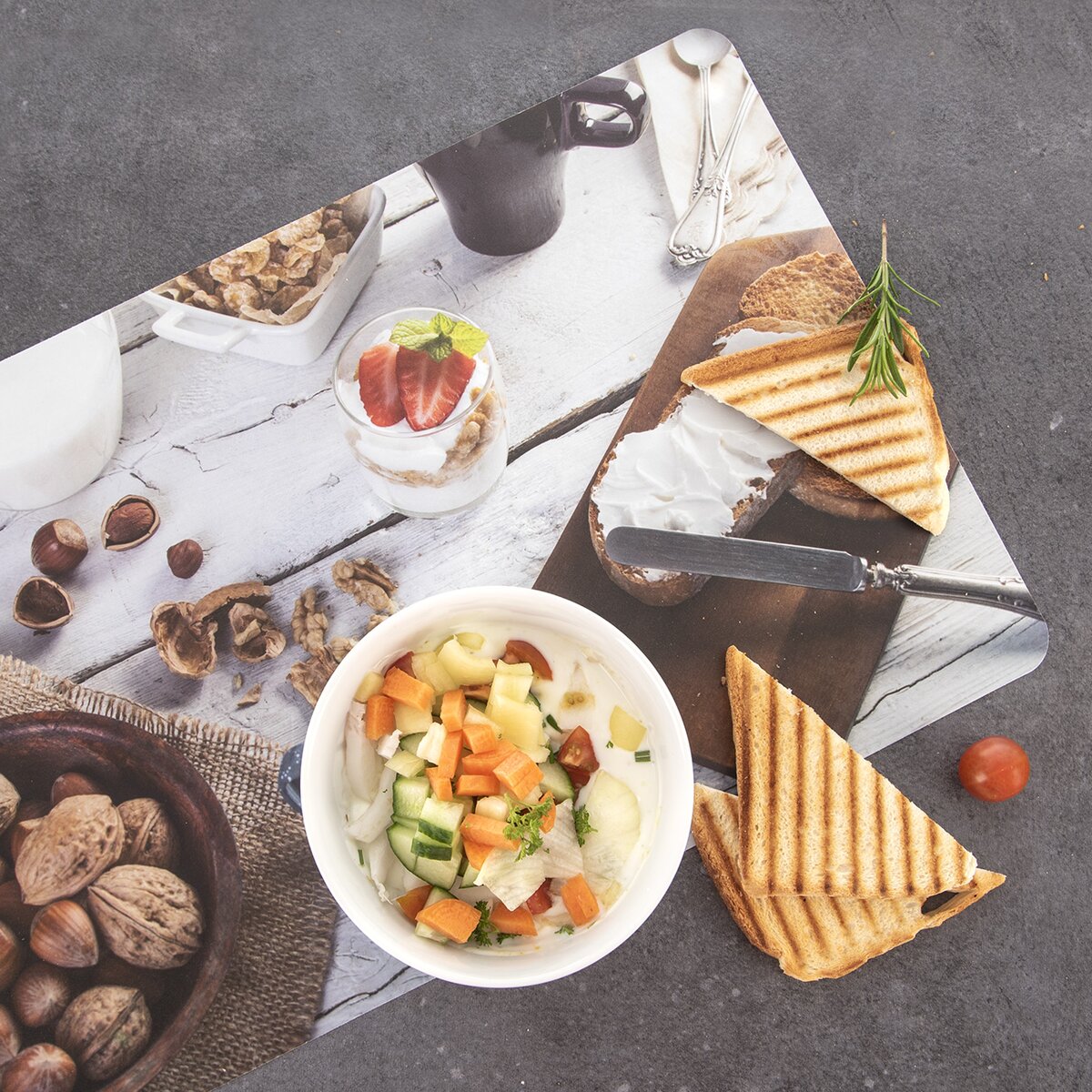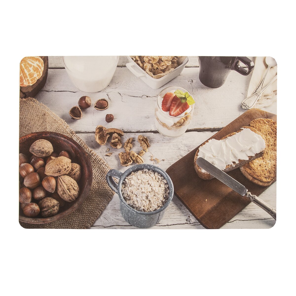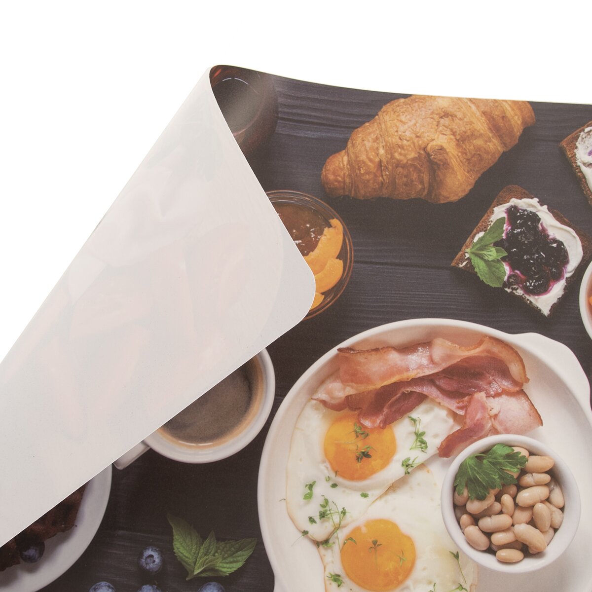 Tam, kde je interiér velmi jednoduchý, toto výrazné prostírání plné ovoce, čerstvého chleba, kávy apod. dobře vynikne. Může být i samostatnou podložkou pod dochucovací soupravou na jídelním stole nebo pod chlebovkou či konvicí na kuchyňské lince.