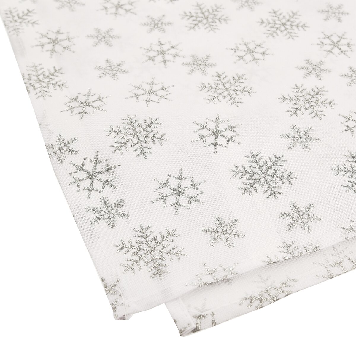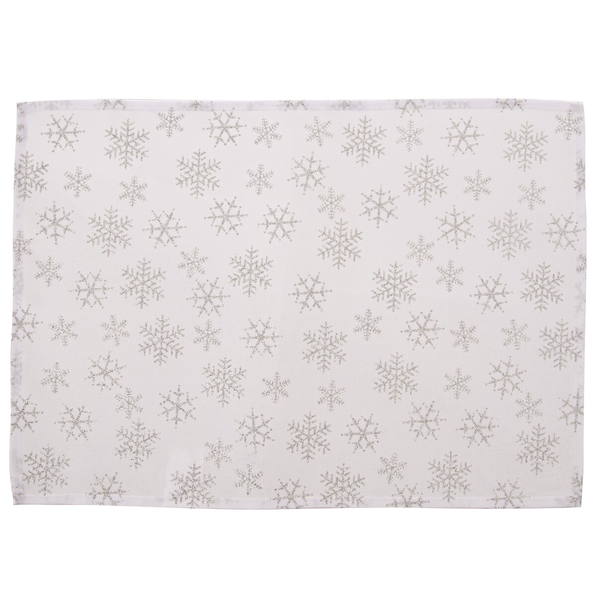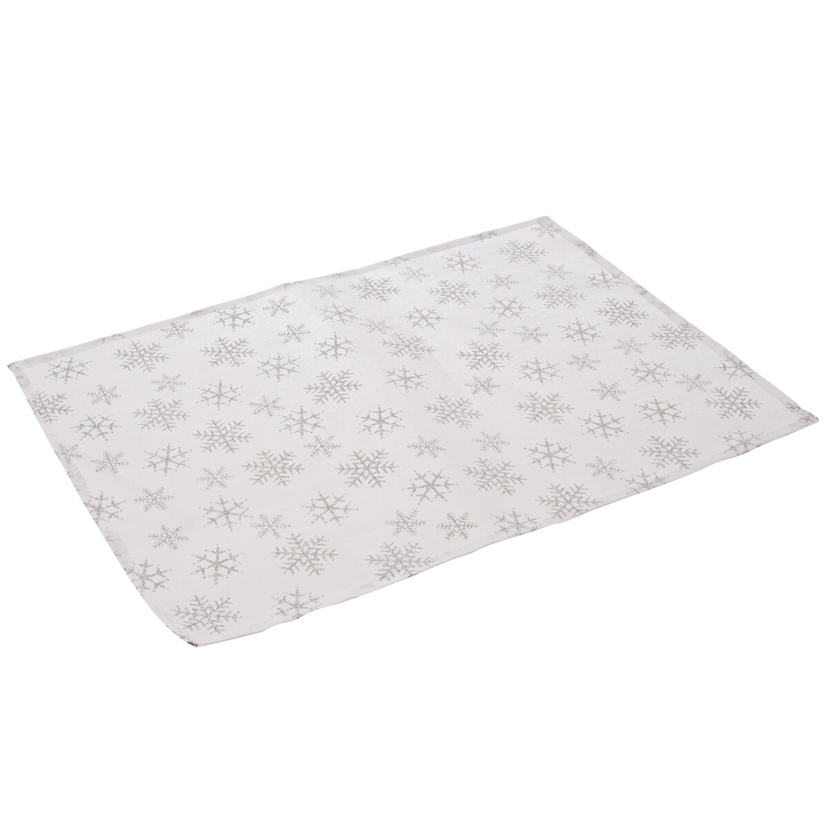 Kód produktu 728002Sada 2 kusů bílého polyesterového prostírání s dekorem stříbrných vloček, kterou využijete především v době adventu a Vánoc.