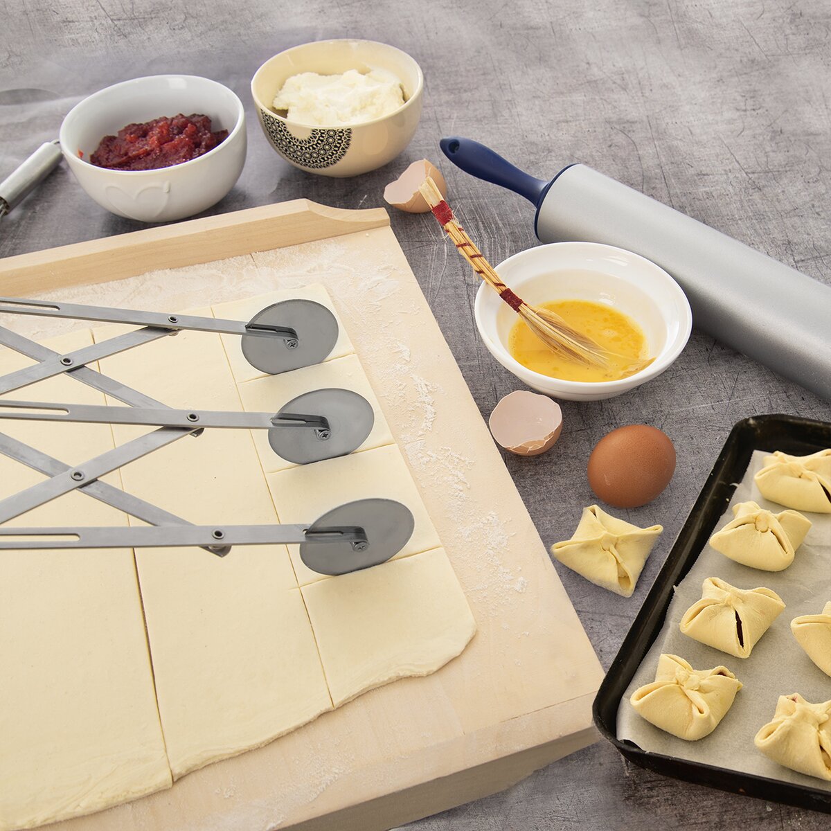 Více informacíNastavitelné cukrářské trojřadé rádélko, chcete-li rádýlko či rádlo, slouží ke krájení nebo značení těsta na stejné proužky nebo čtverce a je vyrobené z nerezové oceli. Několika tahy tak nakrájíte vyválené těsto pro přípravu ovocných knedlíků, tvarohových koláčků nebo slaných tyčinek z listového těsta.