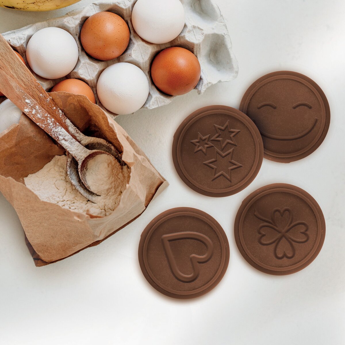 V sadě jsou 4 různé dekory, které po upečení budou krásně vypadat a potěší nejen děti, ale i návštěvu. Servírujte dobrou horkou kávu a sušenky domácí výroby, nebo je zabalte do celofánu a udělejte z nich drobný sladký dárek kolegům v práci či dětem do školky.