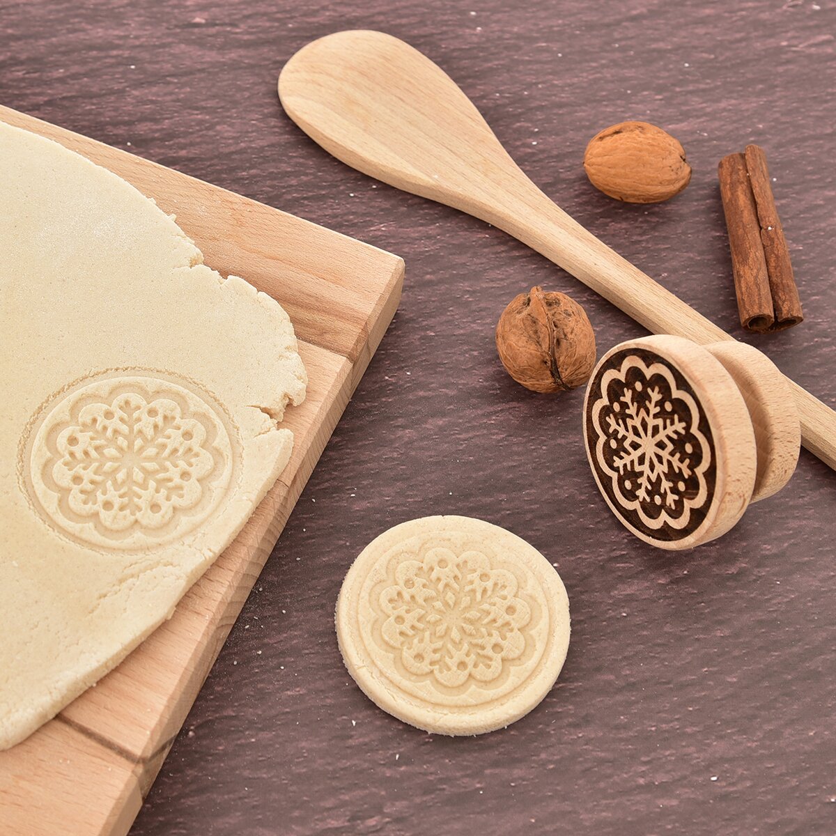 Více informacíZábava pro velké i malé pekaře s originálním razítkem z bukového dřeva. Do vyváleného těsta, ideálně takového, které neobsahuje kypřící přísady nebo sodu, stačí otisknout razítko a kulatou vykrajovačkou průměru 5,5-6 cm vykrojit sušenku. Bude mít krásný plastický reliéf zobrazující sněhovou vločku, který potěší vaše milované nejen v době Adventu, ale i u odpolední kávy nebo dobrého čaje.