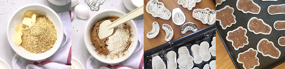 Nejprve si připravte vlašské ořechy a namelte je v bubínkovém mlýnku najemno. Vyndejte z lednice máslo, aby mělo pokojovou teplotu, ovesné vločky kupte buď jemně drcené nebo si pomozte elektrickým sekáčkem. V míse všechny suroviny smíchejte ve středně tuhé těsto a nechte jej odležet. Stačí 1 hodina, ale samozřejmě lépe jej ponechat přes noc v lednici, pěkně se uleží.