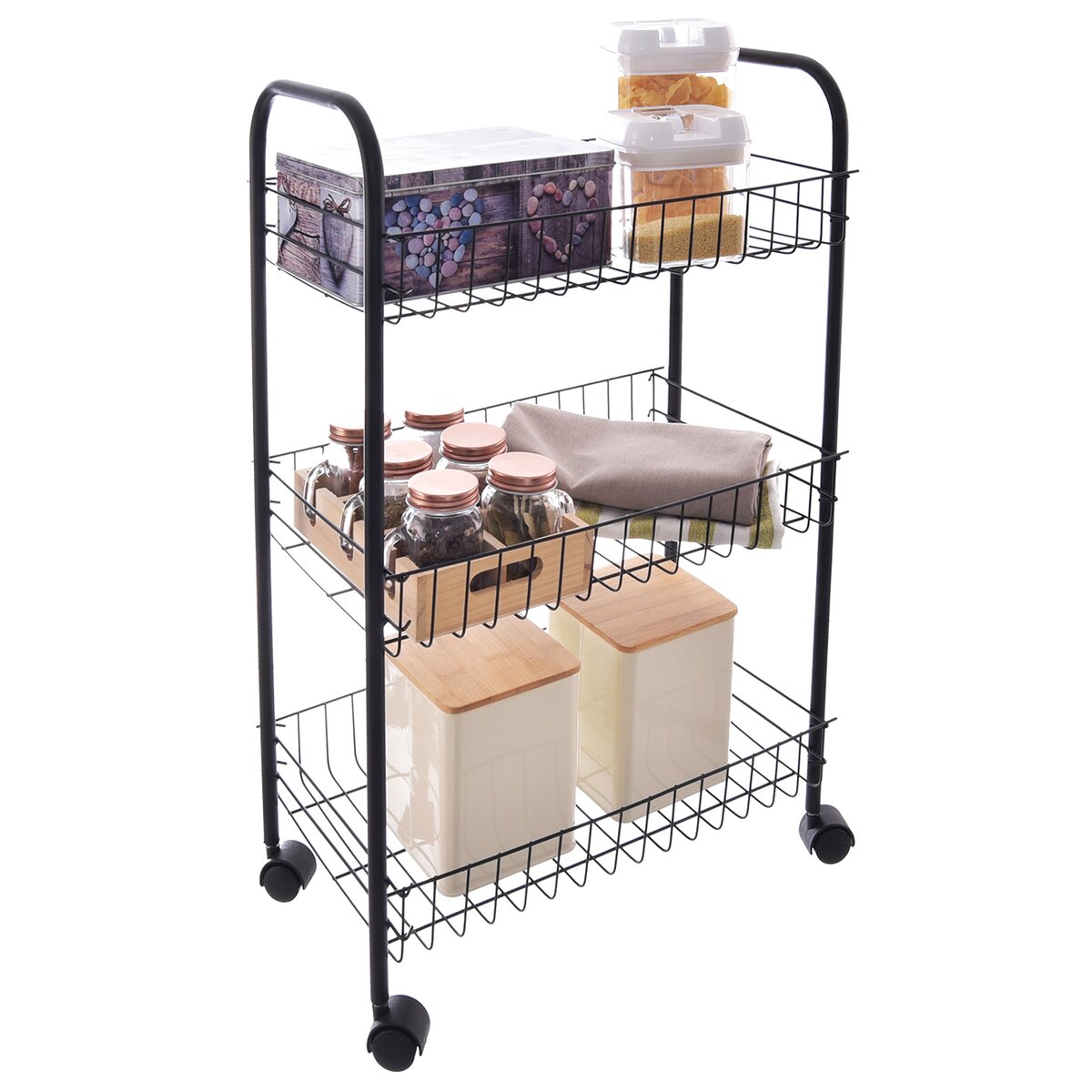 Kovový regál se třemi drátěnými košíky o celkovém rozměru 40,5x24x63 cm bude skvělým odkládcím místem i v menší kuchyni, kam lze uložit dochucovadla, utěrky. V pracovně a dílně najde využití pro boxy s pracovními, psacími potřebami. Ale i na terase nebo balkóně budete mít díky možnosti pojezdu po ruce vše potřebné.