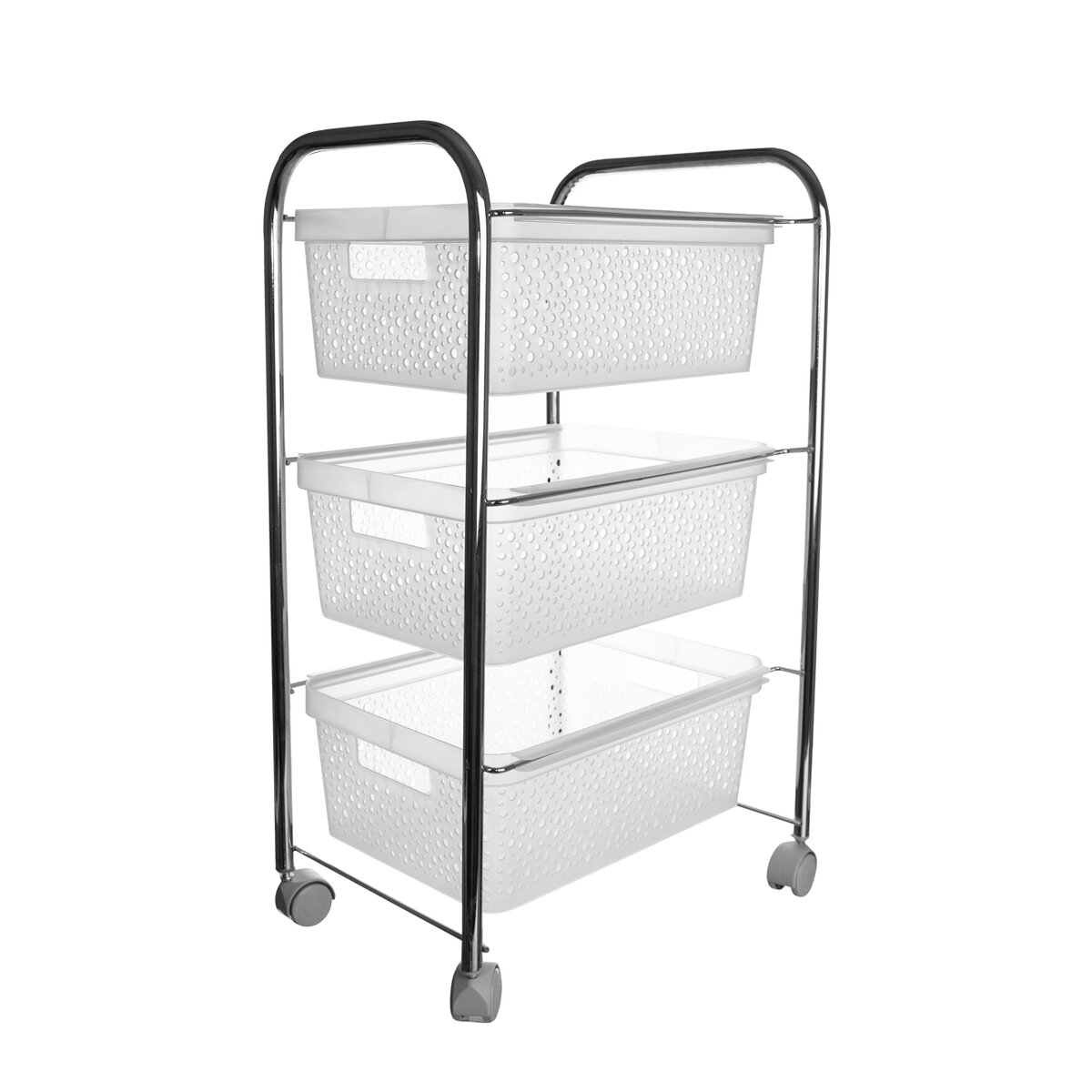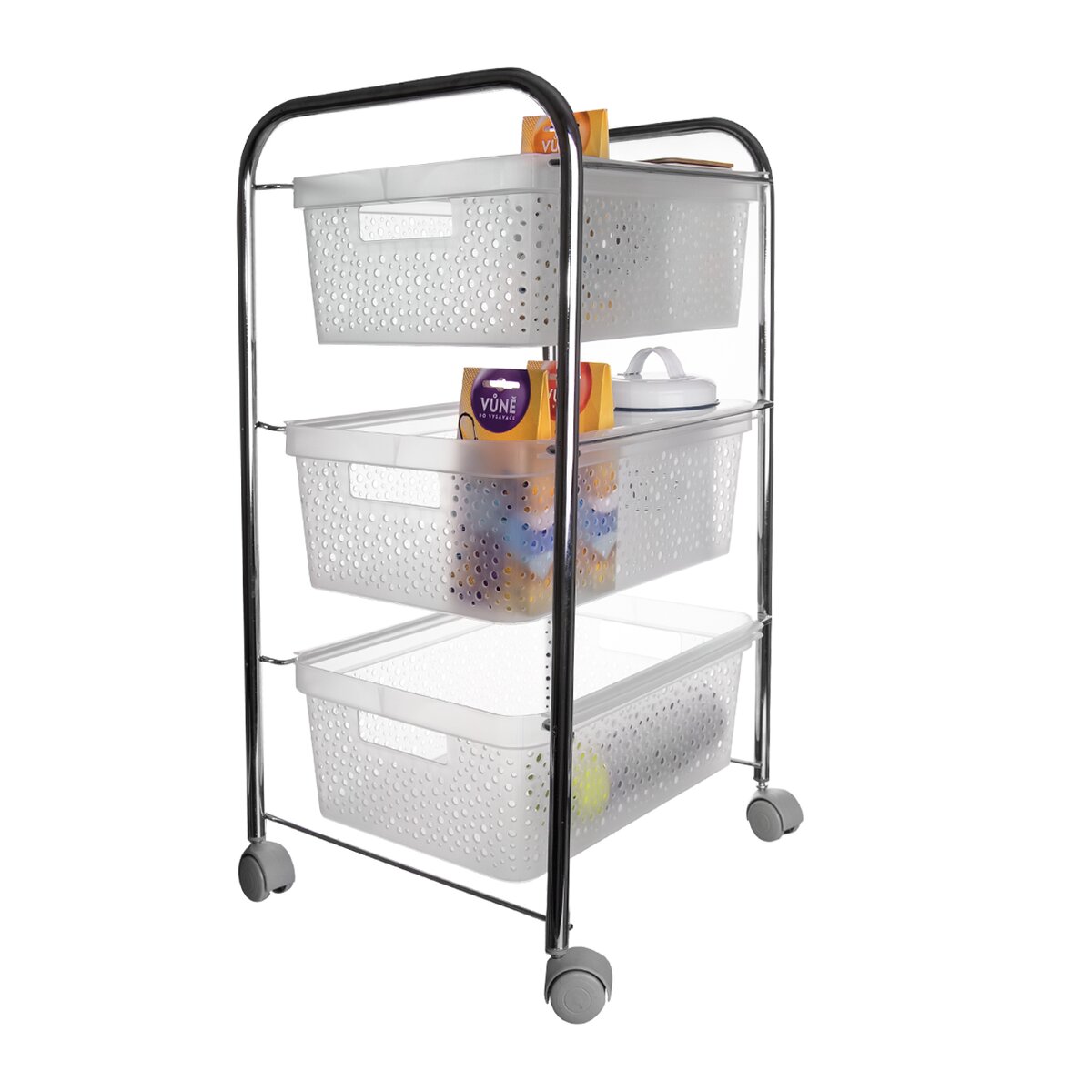 Kód produktu 812601Regál se 3 plastovými perforovanými zásuvkami a kovovým stojanem, ideální pro uložení věcí v kuchyni, koupelně, šatně i v provozovně.