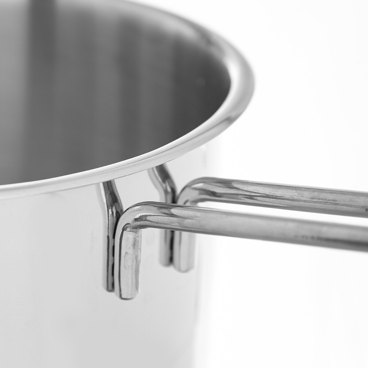 Velký masivní rendlík z kvalitní nerezové oceli s termoakumulačním dnem zajistí úsporné, ekonomické a efektivní vaření, díky němuž objevíte nový rozměr při vaření, redukování šťáv a masových výpeků.