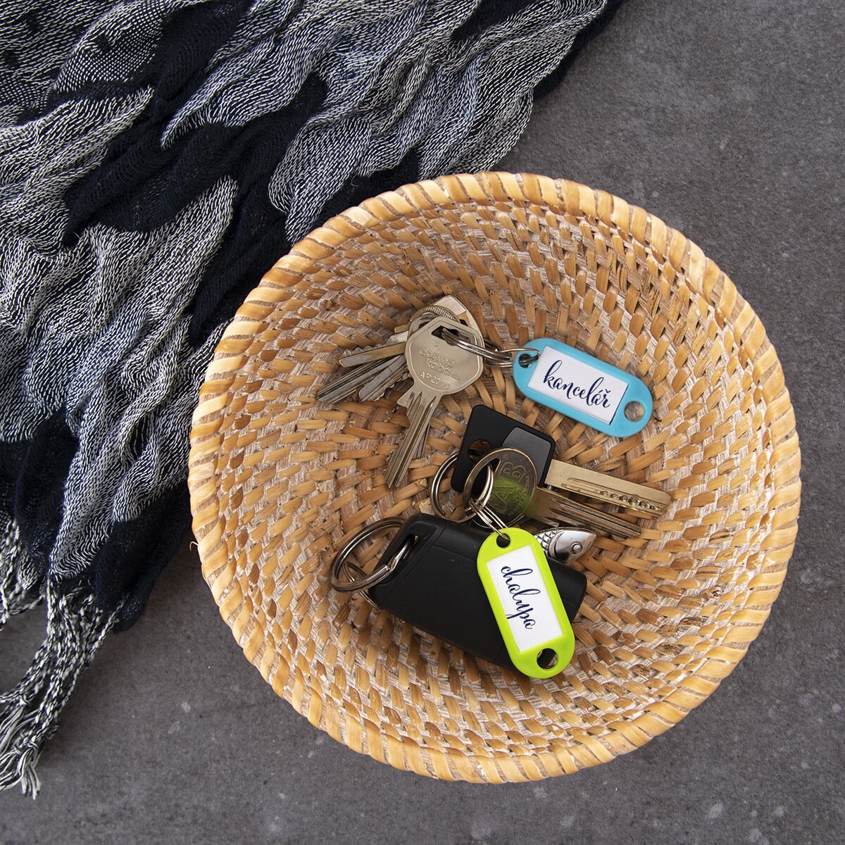 Někdy bývá v klíčích trochu chaos. Zvlášť když jsou náhodně zavěšené na háčcích nebo vložené v košíku na botníku. Pak oceníte barevné polypropylenové rozlišovače, doplněné kovovým kroužkem.