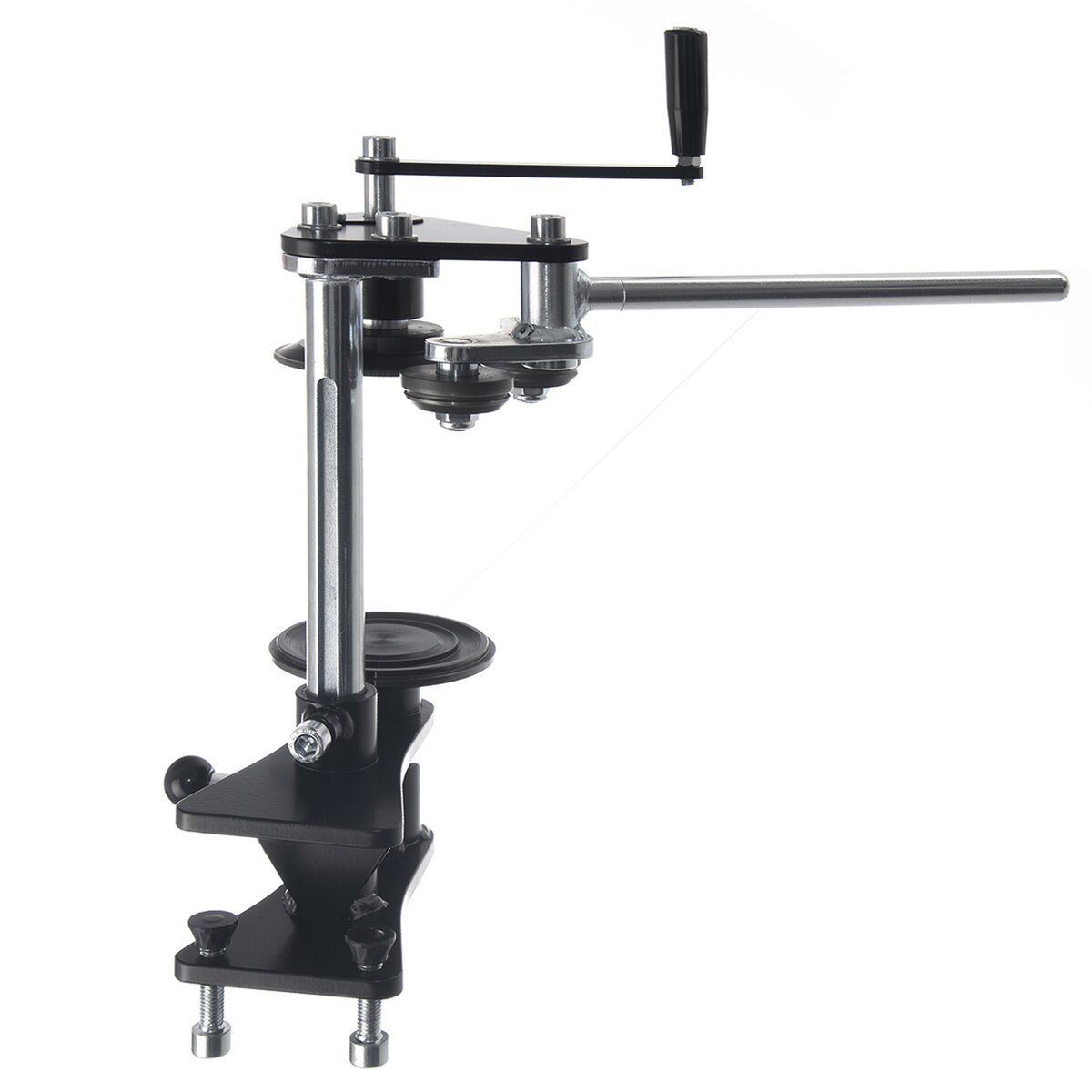 Strojek je vyroben z oceli s povrchovou úpravou (zinkování, práškový lak a černění), podložky jsou ze silonu PA6. Ochranu horní části pracovní desky, která by měla mít tloušťku max. do 4 cm, zajistí guma.