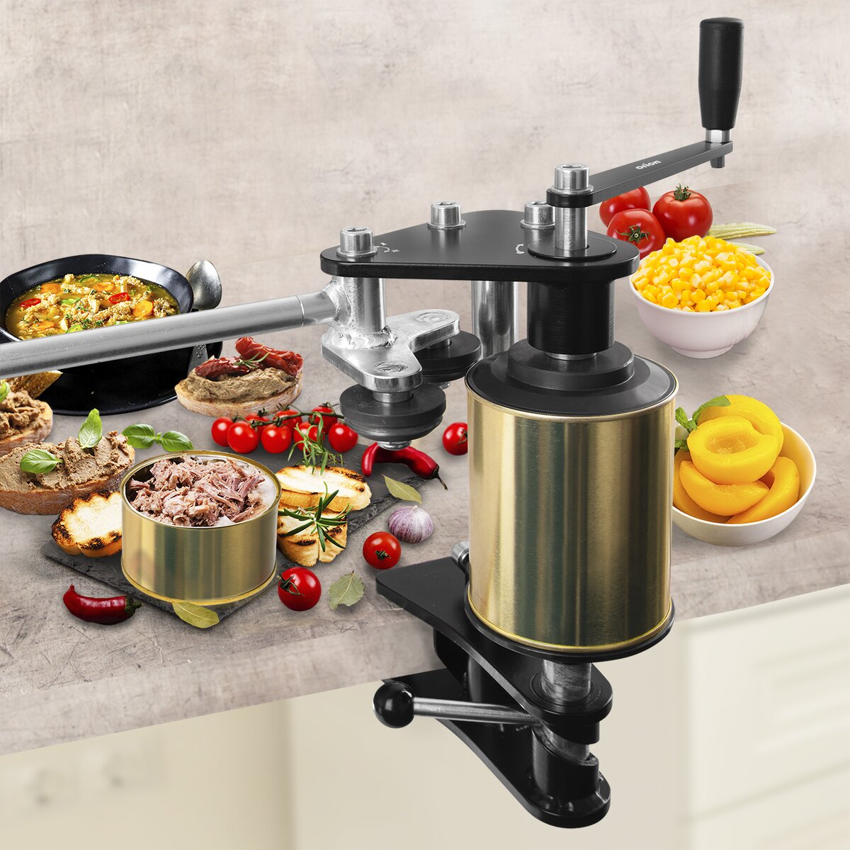 Ruční mechanický zavírač plechovek pomůže uchovat pomocí varu (sterilací) syrové, dušené a pečené maso. Plechovku po naplnění upevníte do zavírače a uzavřete ji pomocí dvou procesů upevňování víčka na plechovku – otáčením kliky. Plechovky pak sterilujete v hrnci (lépe 2x). Součástí výrobku je návod na sestavení, nastavení, používání a recept.