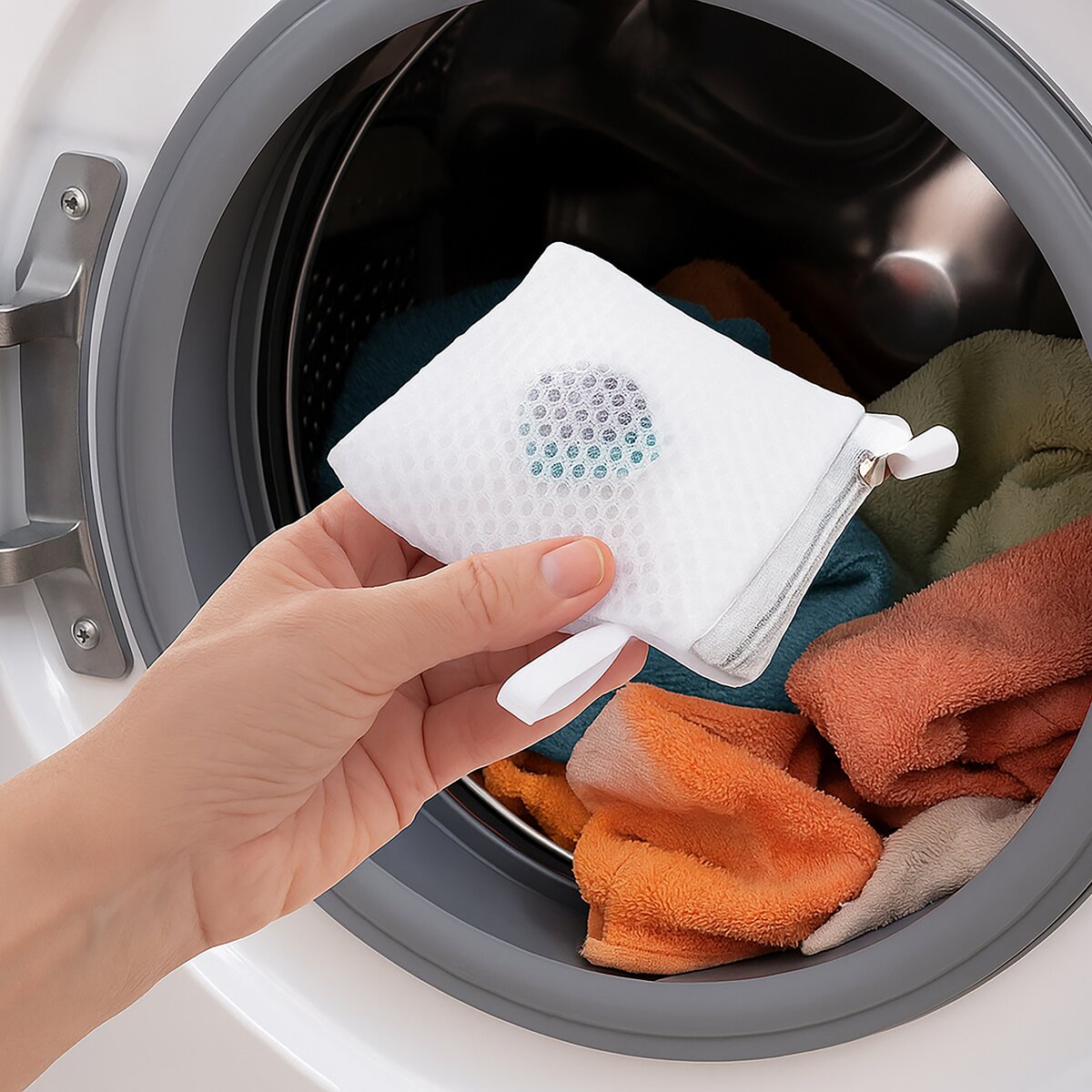 Praktický polyesterový sáček na prací kapsle je v sadě 2 kusů. Zajistí, že se do bubnu pračky nedostanou zbytky kapslí nebo vonných perel.